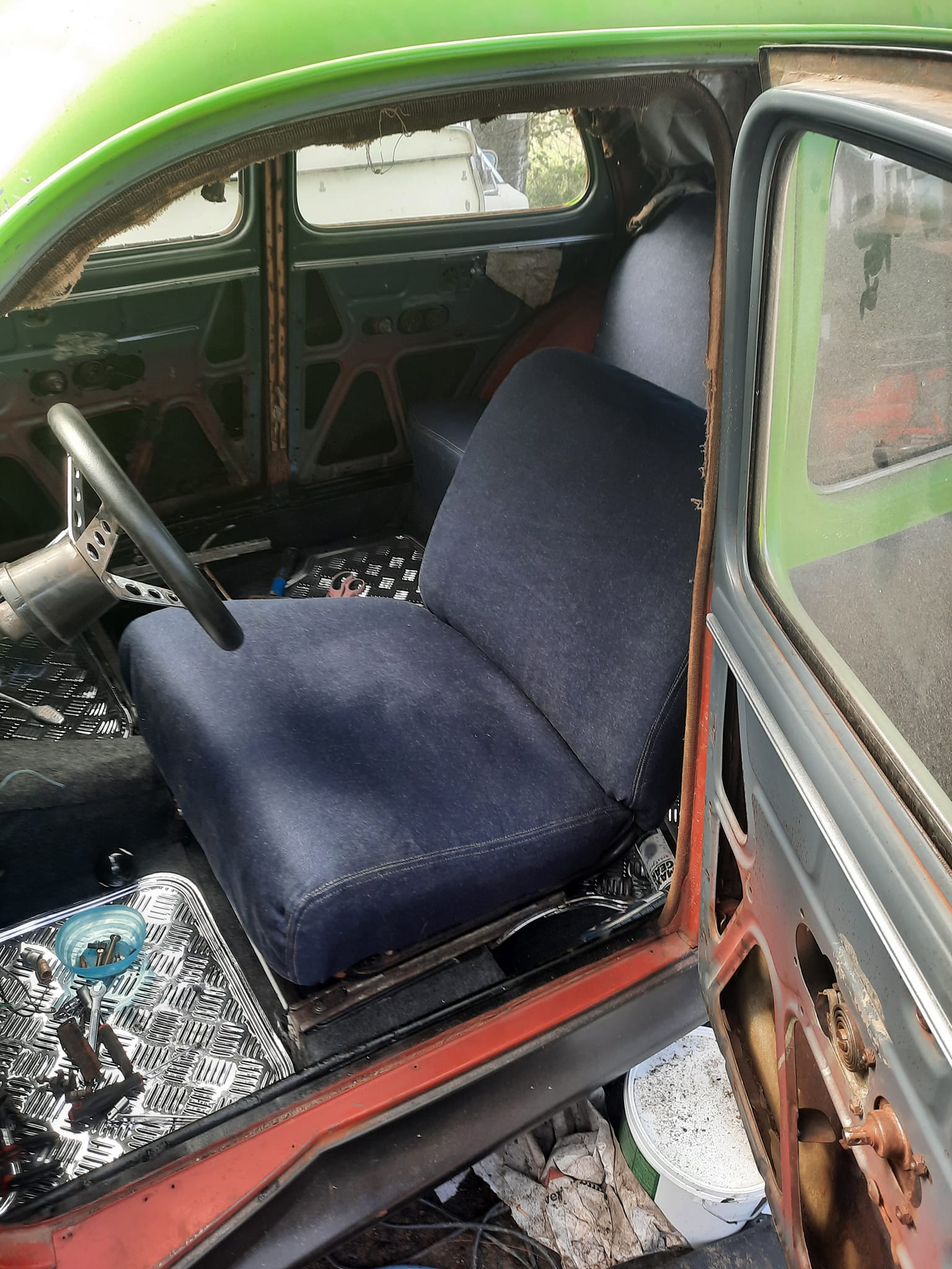 Nu i alla fall fått lagt igen sista hålet (vad jag vet om) monterat in ett säte fram