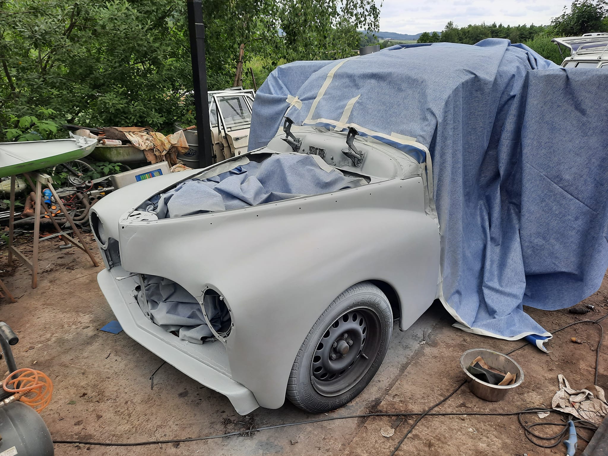 Då vart nosen och undersidan av huven grå och epoxigrundad...