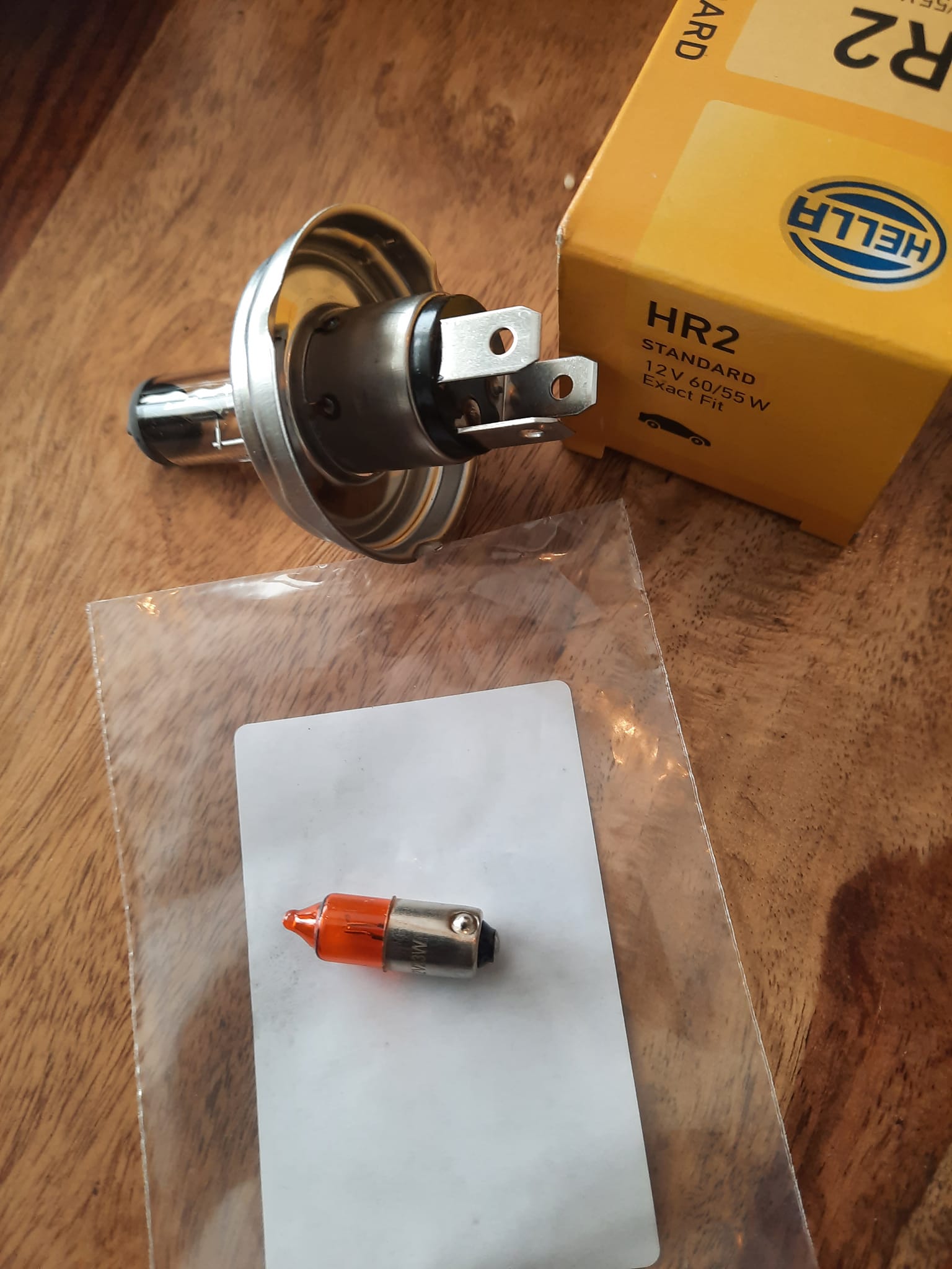 Hade paket att hämta denna gång bara lite glödlampor. Men hittade vanliga Hella h4 med fattning som asymmetriska lampor.