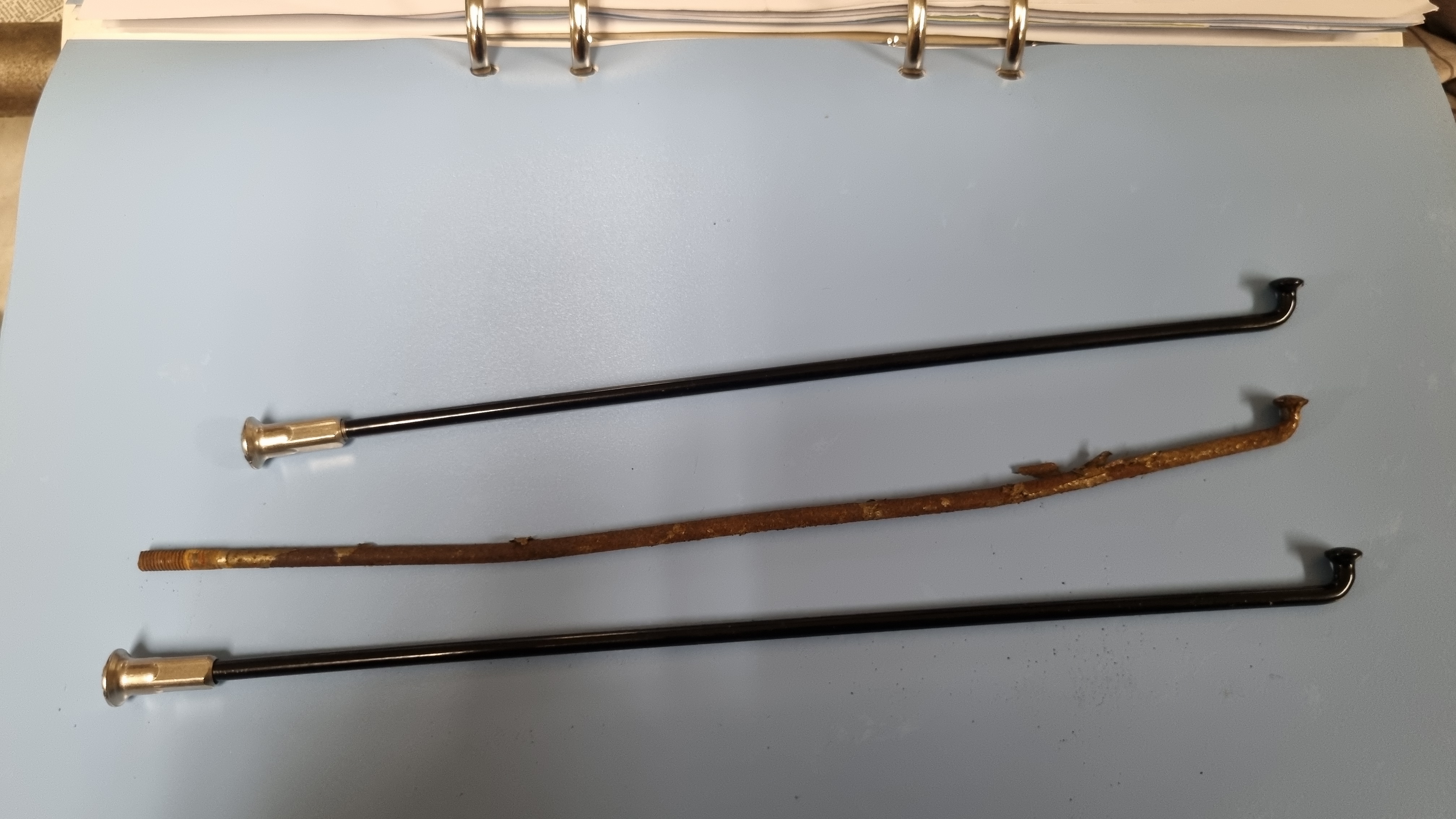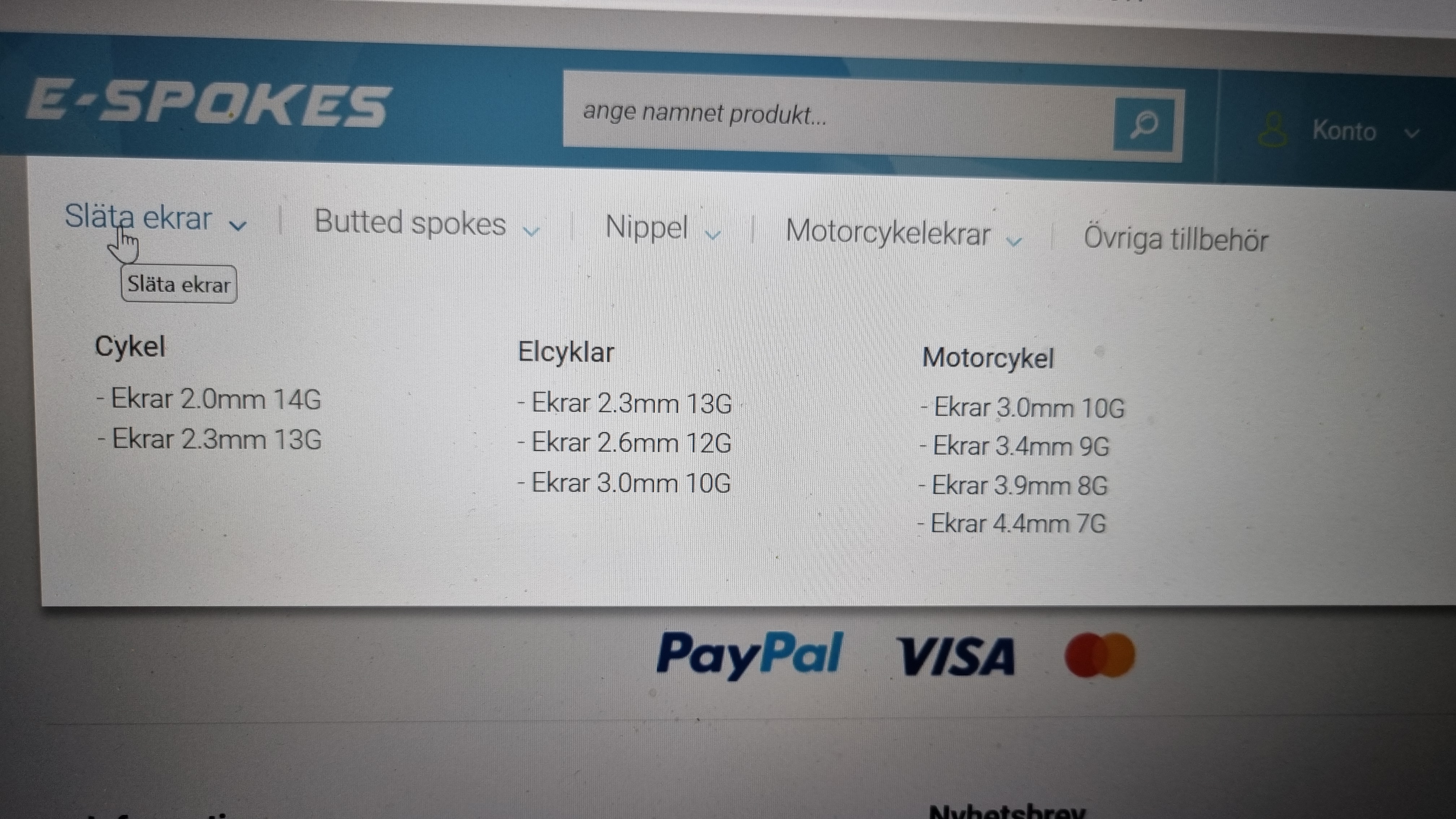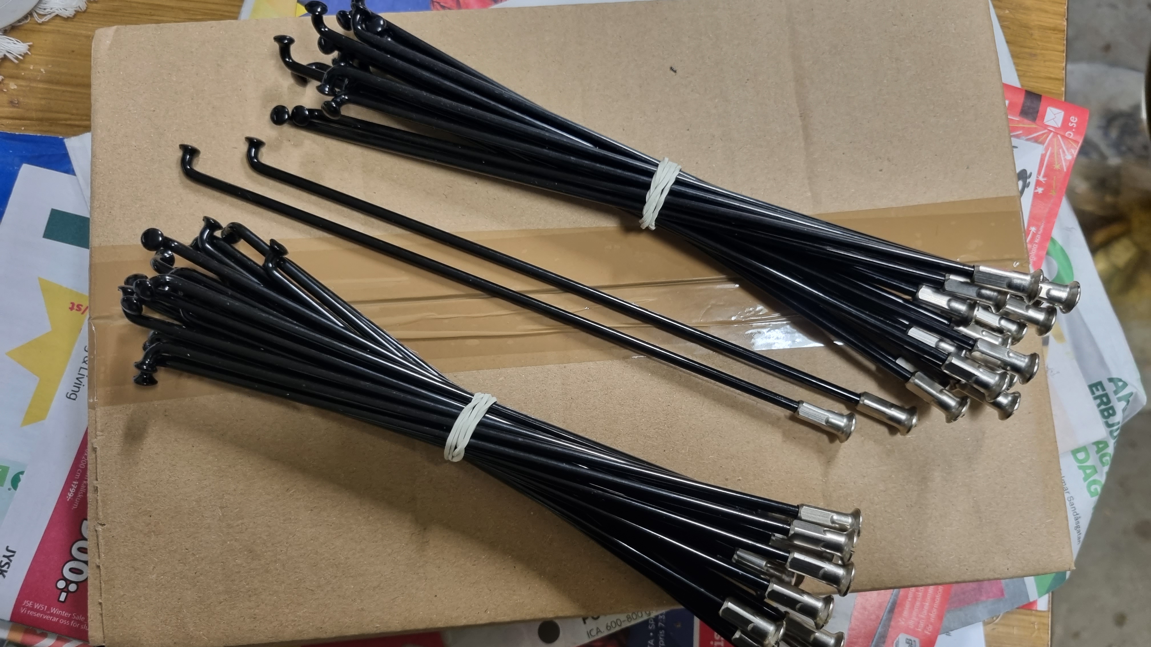 Jag hittade ett ställe som jag missat förut, dom sålde ekrar i 1mm intervaller och i olika färg ( E-spokes.)