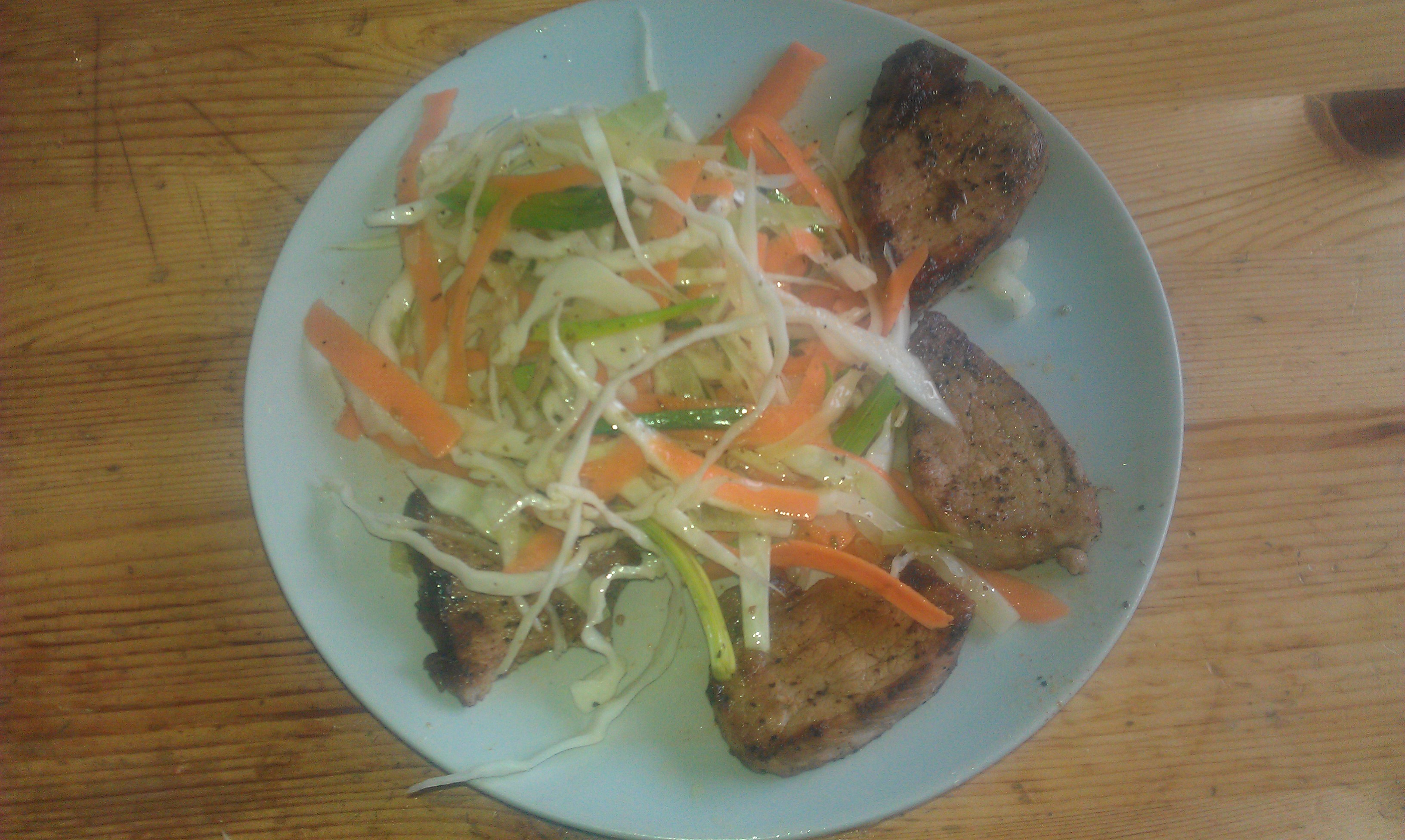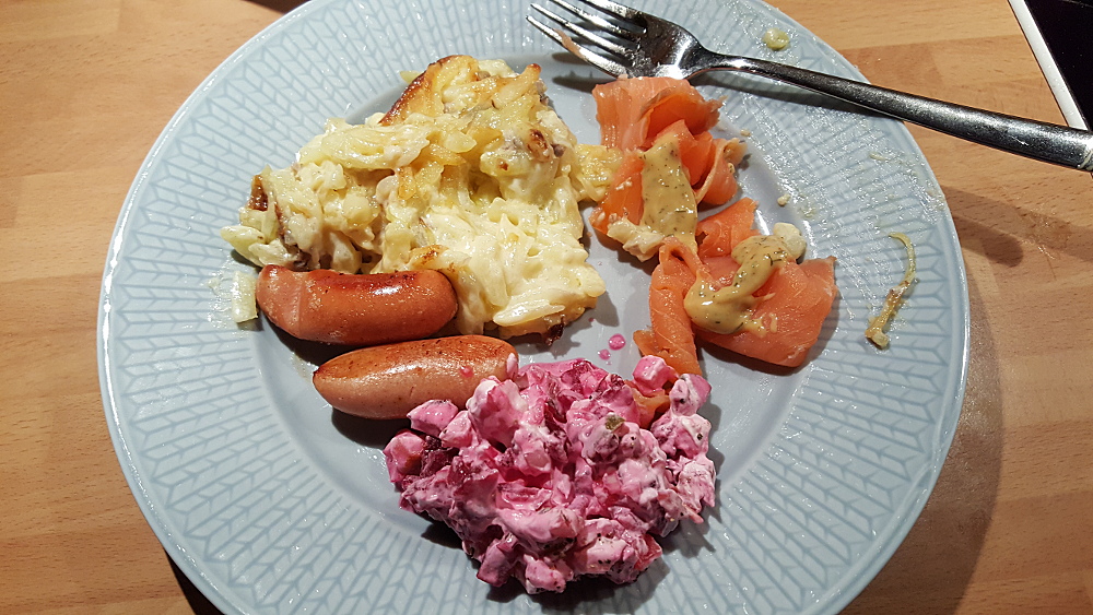 Hade bönor & kikärter med bacon och Trinidad scorpion korv till lunch, fick bli något lätt till aftonen