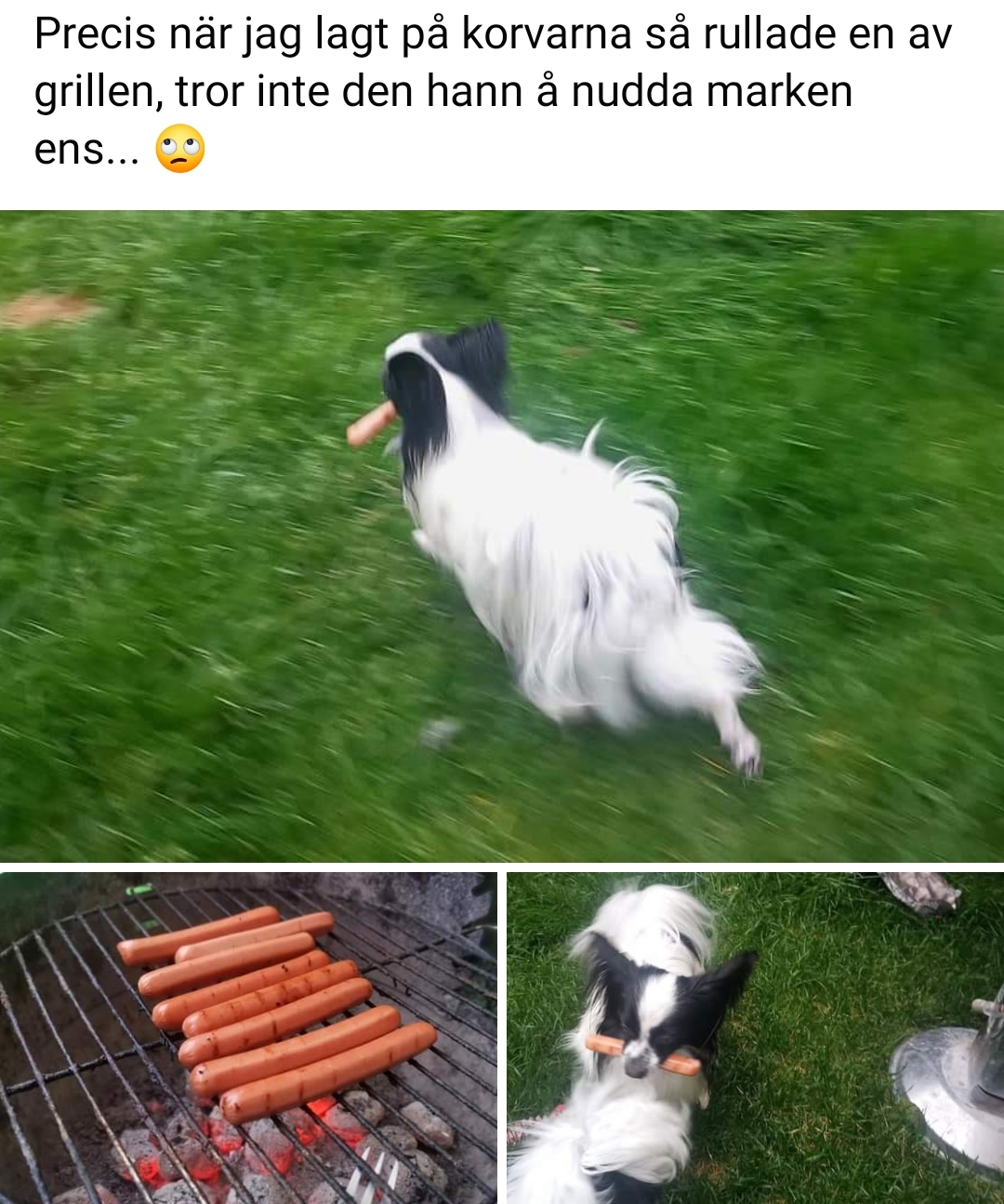 En sån där liten lurvig filur,har jag också brevid mej när jag står vid grillen. Beredd att attack-kasta sej fram och glufsa i sej köttbitar och allt annat möjligt skit som trillar ner.