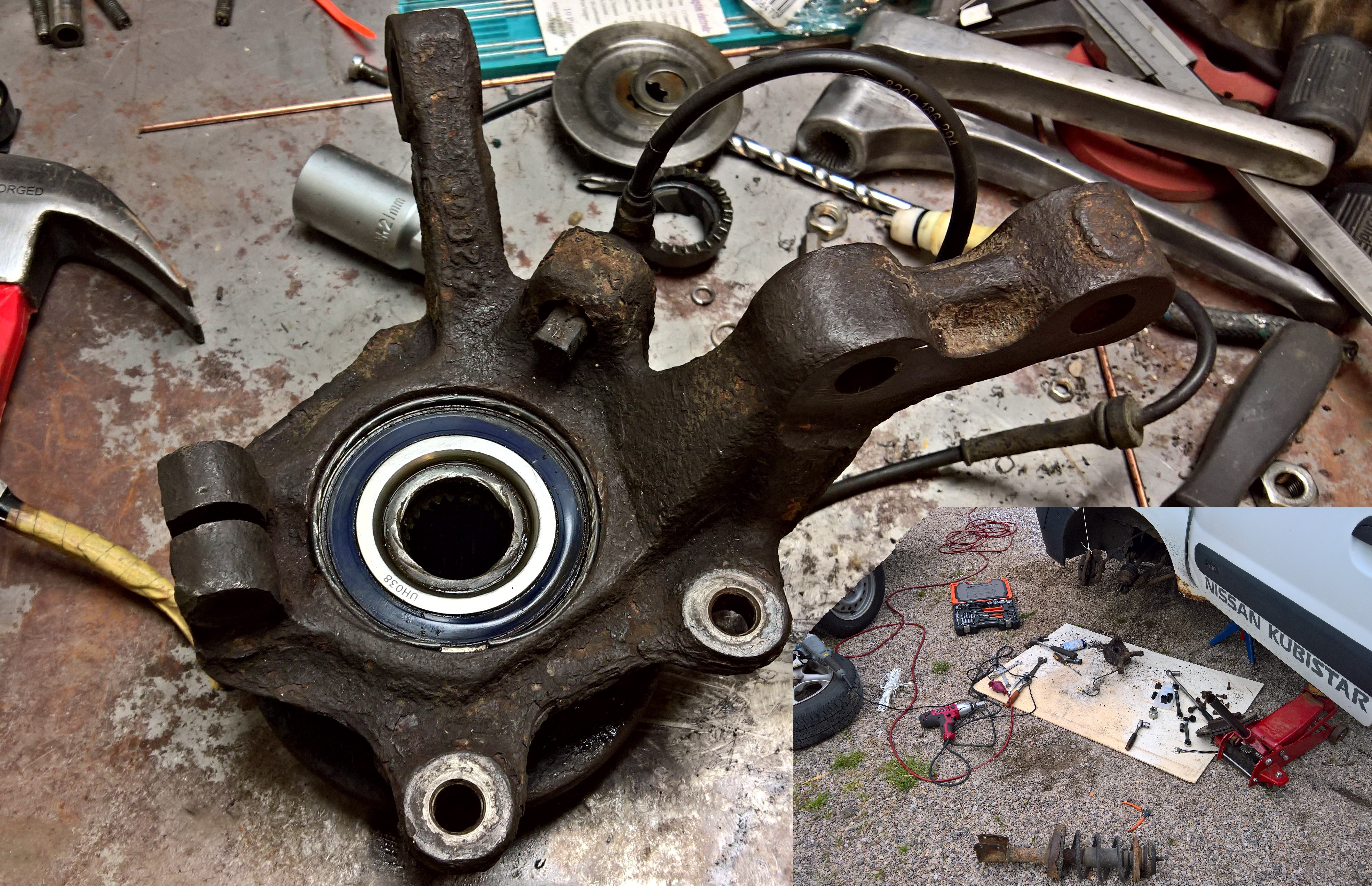 Byte av ett hjullager + styrleder V o H , båda fjädrarna fram och vänster spindelled.