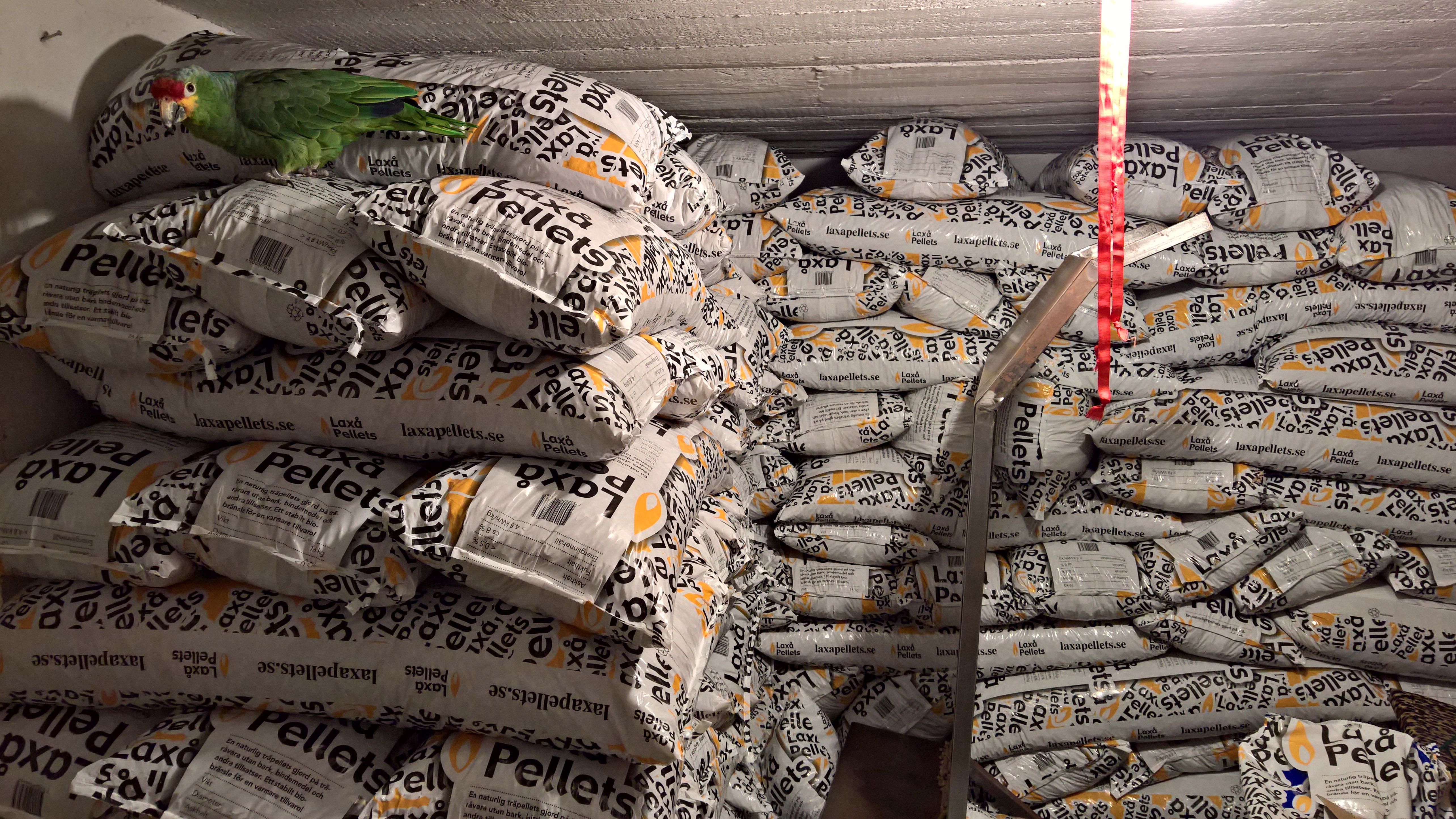 Söndagen var fin så det passade bra att få in fem pallar med pellets.
