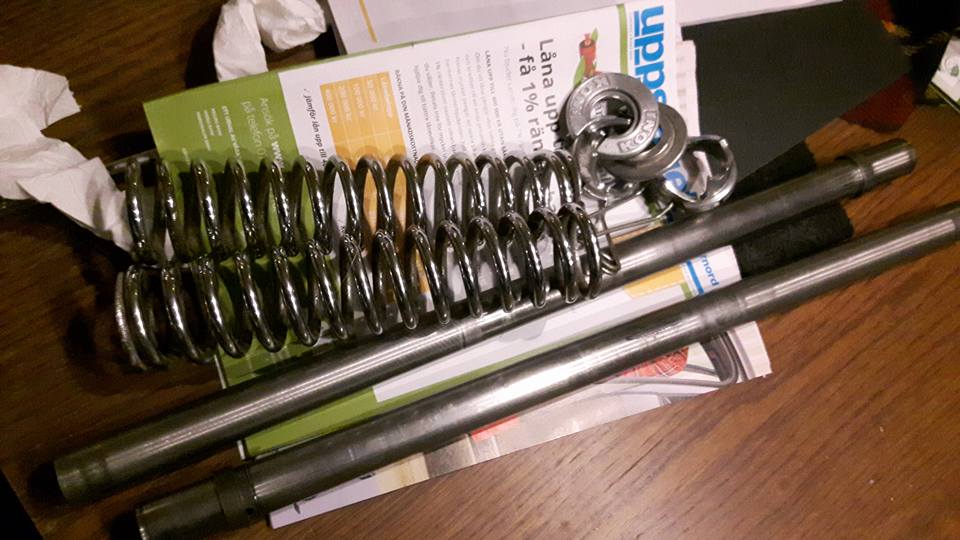 Men fått ihop dämparna vart bra tur Janne såg att de var kvalitetsdämpare för annars hade de stenstumma dämparna
