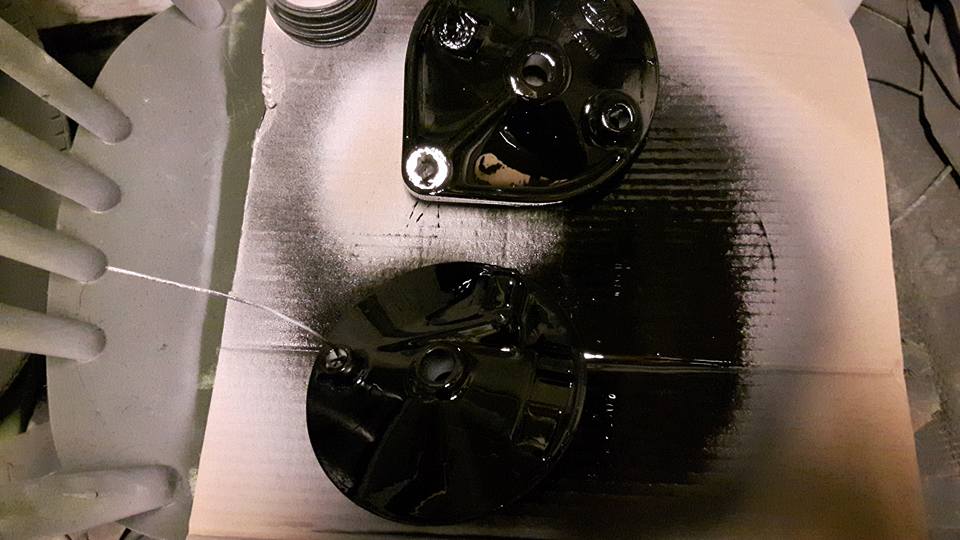 Nu sitta studera och jämföra högblankt kontra den halvblanka färg som användes till stötdämpare!!