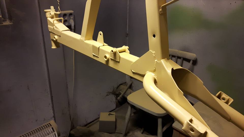 Framgaffeln har minst sagt råkat ut för något ordentligt!! Jisses så glad inte jag satt på men knäckta gaffelrör vart böjda någon cm!! Riktades åxå idag!! Dess utom lyckades jag hinna med ett lager grundfärg och första lagret svart på de sista delarna.. Så blir ett lager på de delar som behöver i morgon i övrigt ramjobb med lite svets innan lack av ram i helgen!!