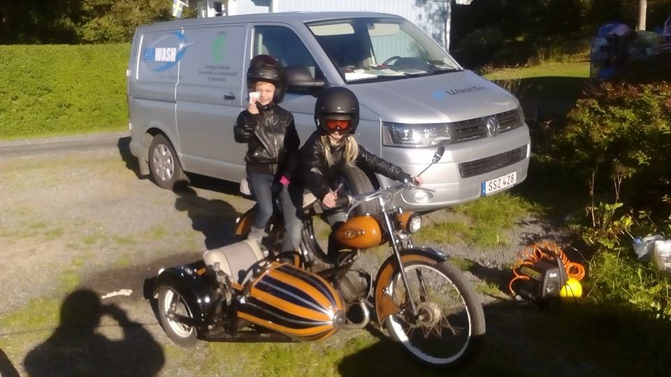 Madicken och Rasmus på "deras" moped.. Ett måste för en ensamstående pappa om de ska bli åkande på barnveckor!