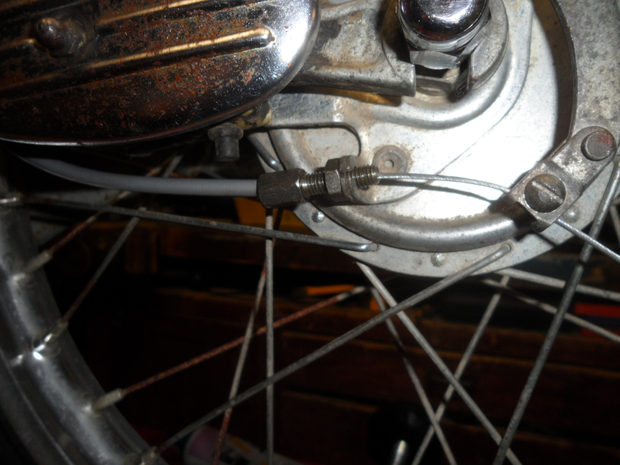 Broms wiren är farligt felmonterad, den ska gå runt skruven & vara innanför tapparna på den yttre delen.