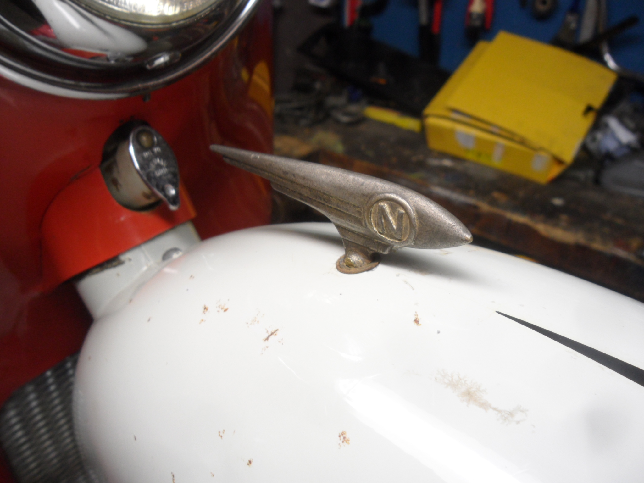 Den är hel men behöver nog lite silverfärg för att passa in på den fina moppen.
