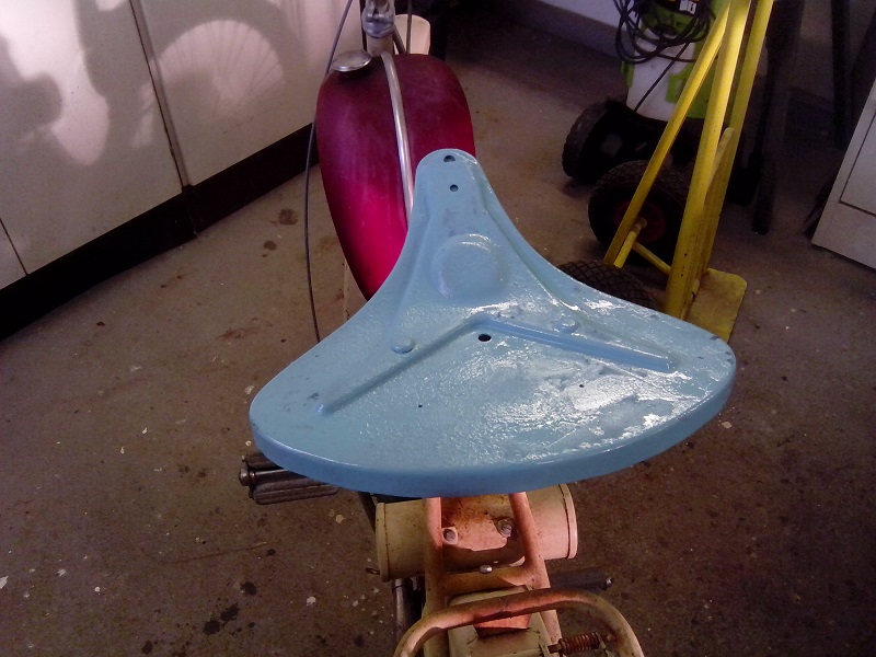 Sen tog jag in sadeln och tog bort skumgummit, frågan är bara vad man ska göra med den nu? Den hade lite fel form för att bara blästra och lackera.