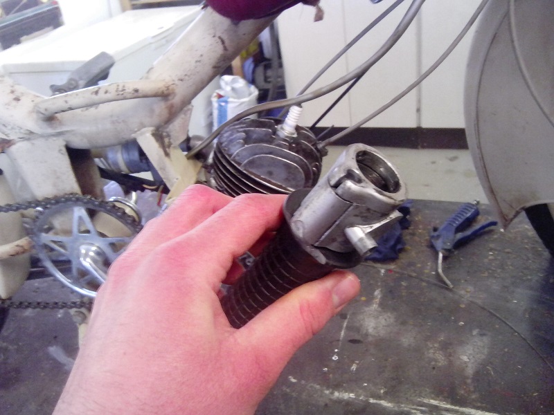Efter lite trampande och fipplande med förgasaren så gick den, typ. Efter lite mer fipplande så gick den så pass att den gick att köra men behövde hjälptramp i minsta motlut men den gick.
