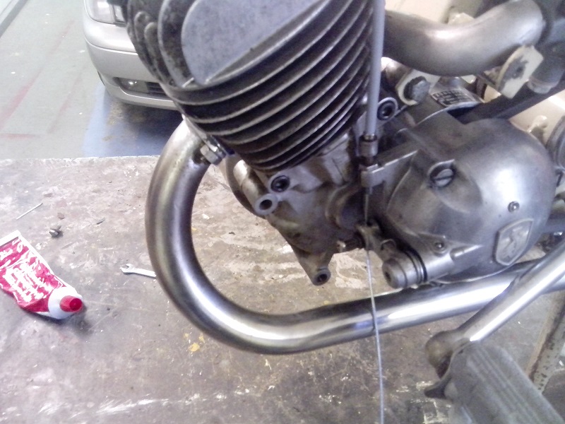 Sen skruvades motorn, avgasrör och insug på plats samt att förgasaren skruvades ihop och monterades.