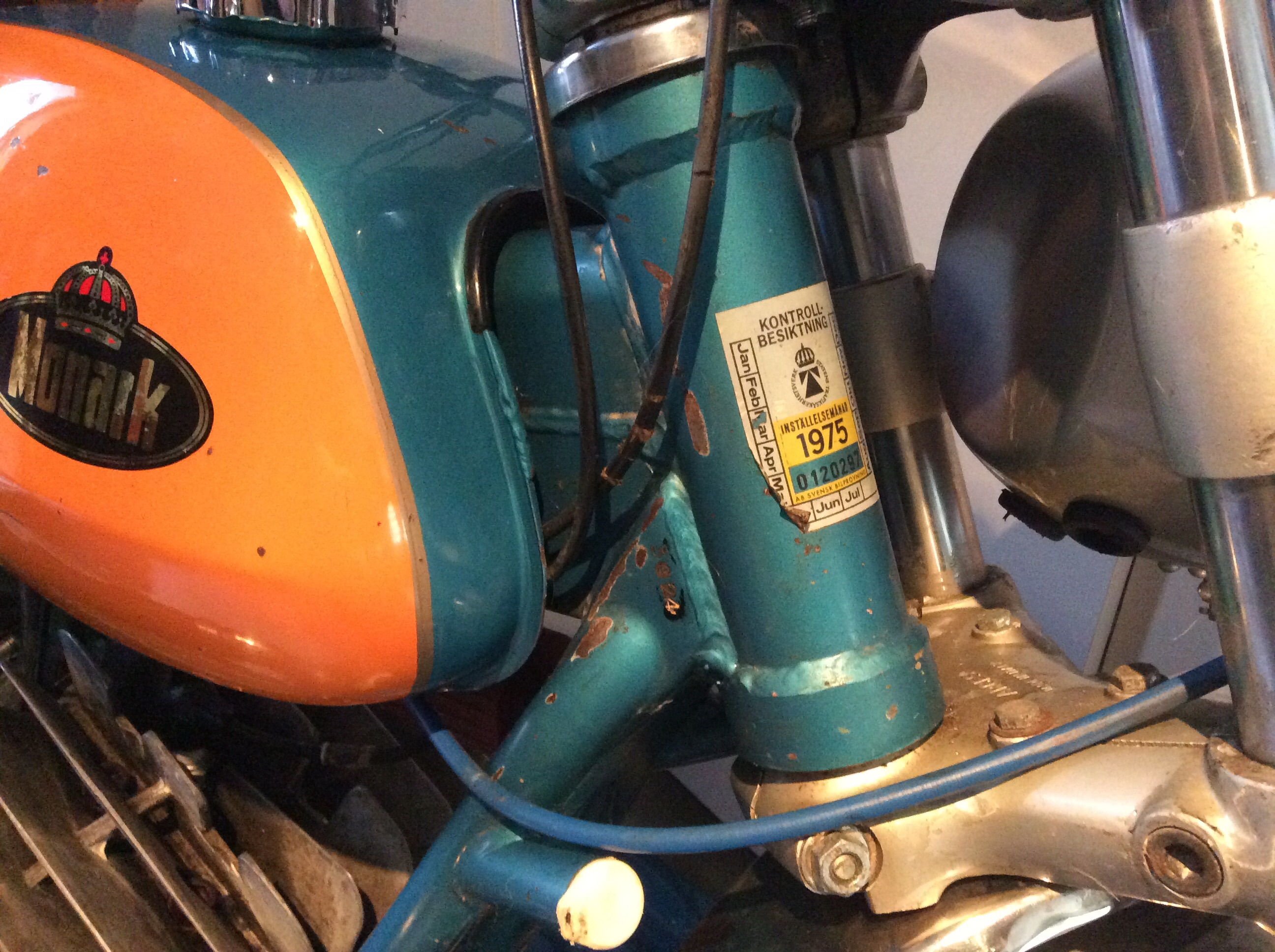 På bild ovan syns ett "bakstycket" till lyckta bak. Ser och är väldigt skitigt men är som ny under detta! Tog lite autosol och gnuggade lite o fick det att bli riktigt fint som ses på kanten. Är någon som behöver så har jag en över o dessa är til -70 -71. Och även en nos sving, som jag köpte tidigare och hade tänkt modda så det passade sachsnav med. Men väntar tills jag hittar rätt!