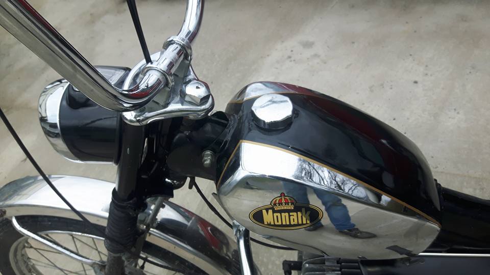 nu pryder mopeden riktigt fint. Återstår som alltid några "bara" som bättra i lite färg fixa en förstärkningsrör till övre fästet för motorbågen. Hade även