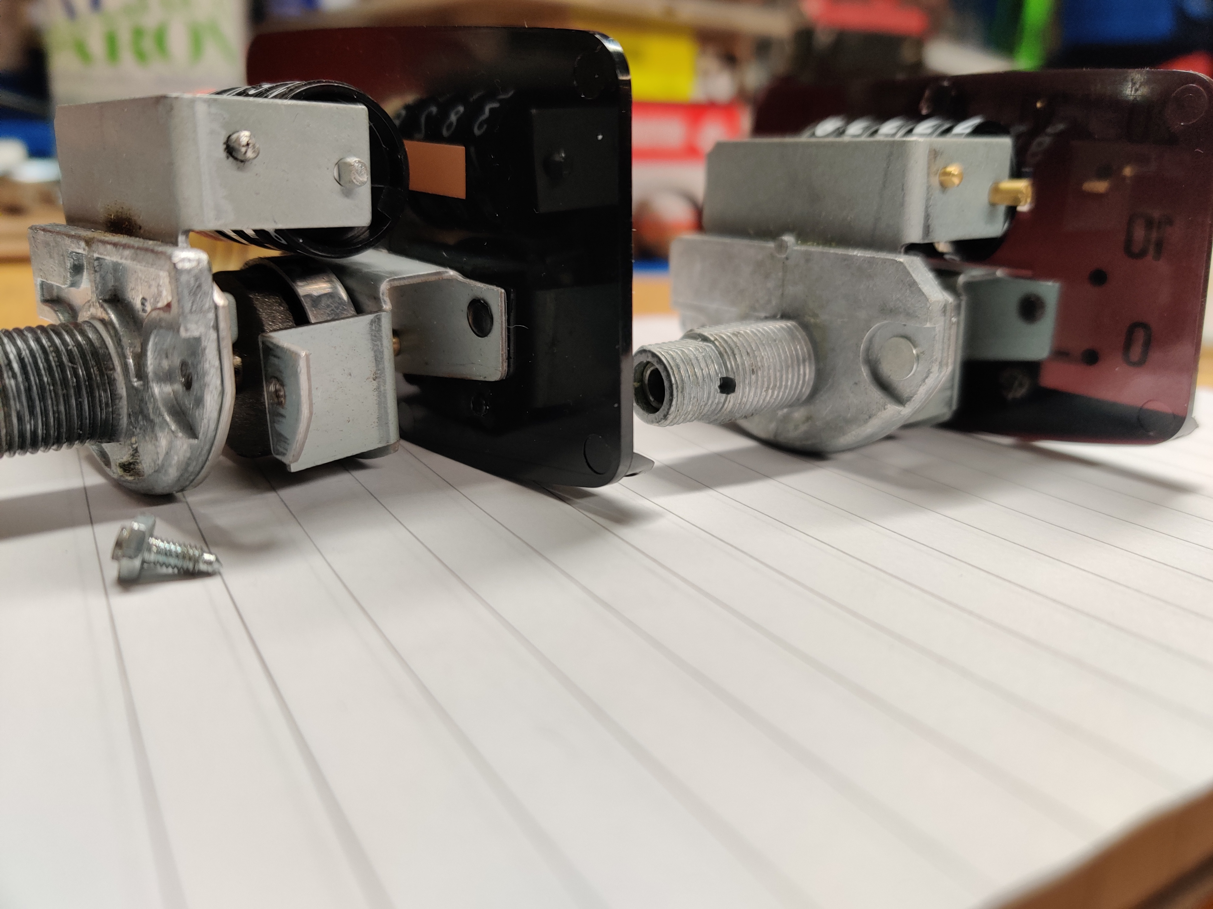 Inte mycket som skiljer bröderna åt. Den lite snyggare brodern till vänster har skruvar som håller ihop räkneverk och mätartavla, medan den nyare är nitad. Men jag slapp borra ur nitarna då jag med några droppar olja, tålamod och motion fick liv i originalet och får därmed behålla de snygga räkneverket mistick_yes.gif