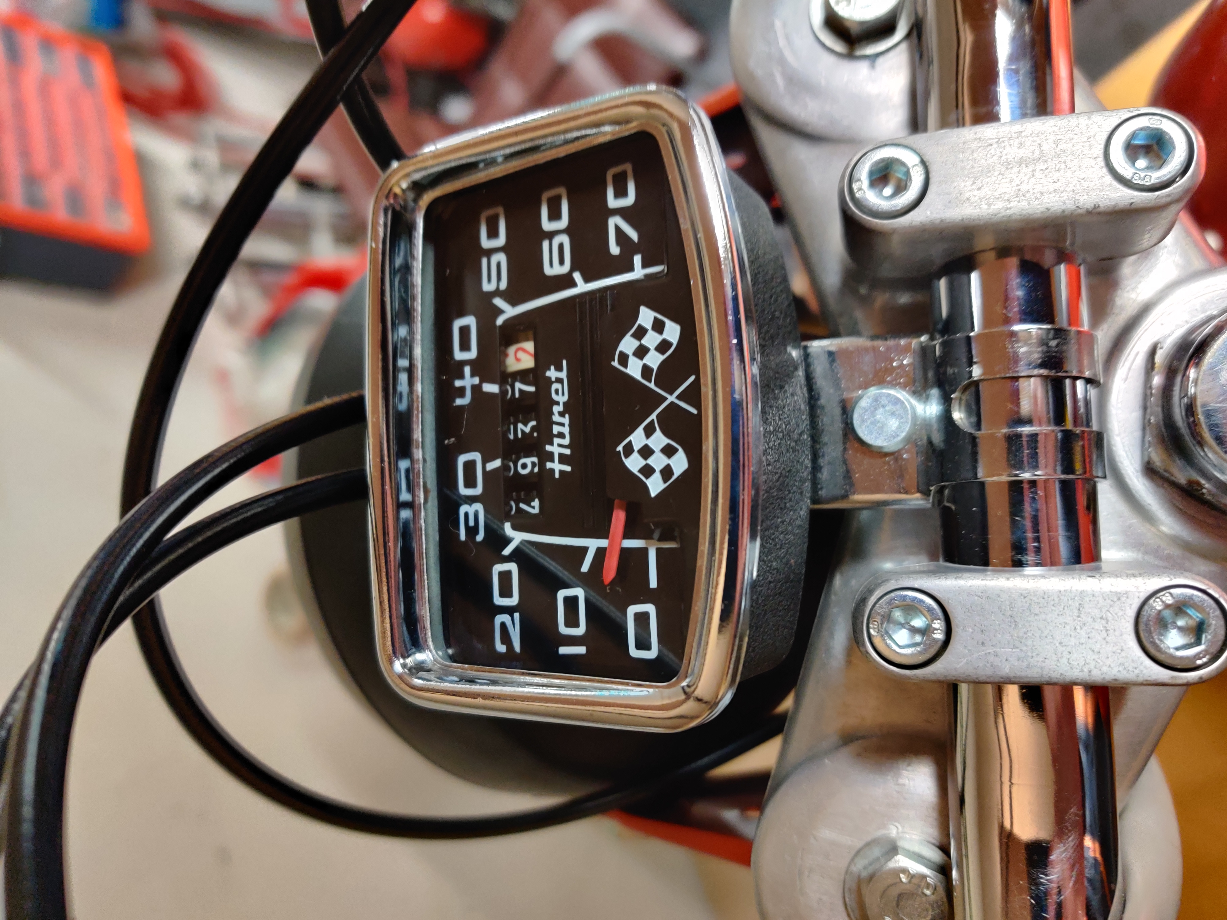 Hastighetsmätaren jag fick tag i visade sig vara stum i drivningen. Jag hade inte väntat mig något annat, och hade därför inhandlat en donator att knycka det mesta ifrån.