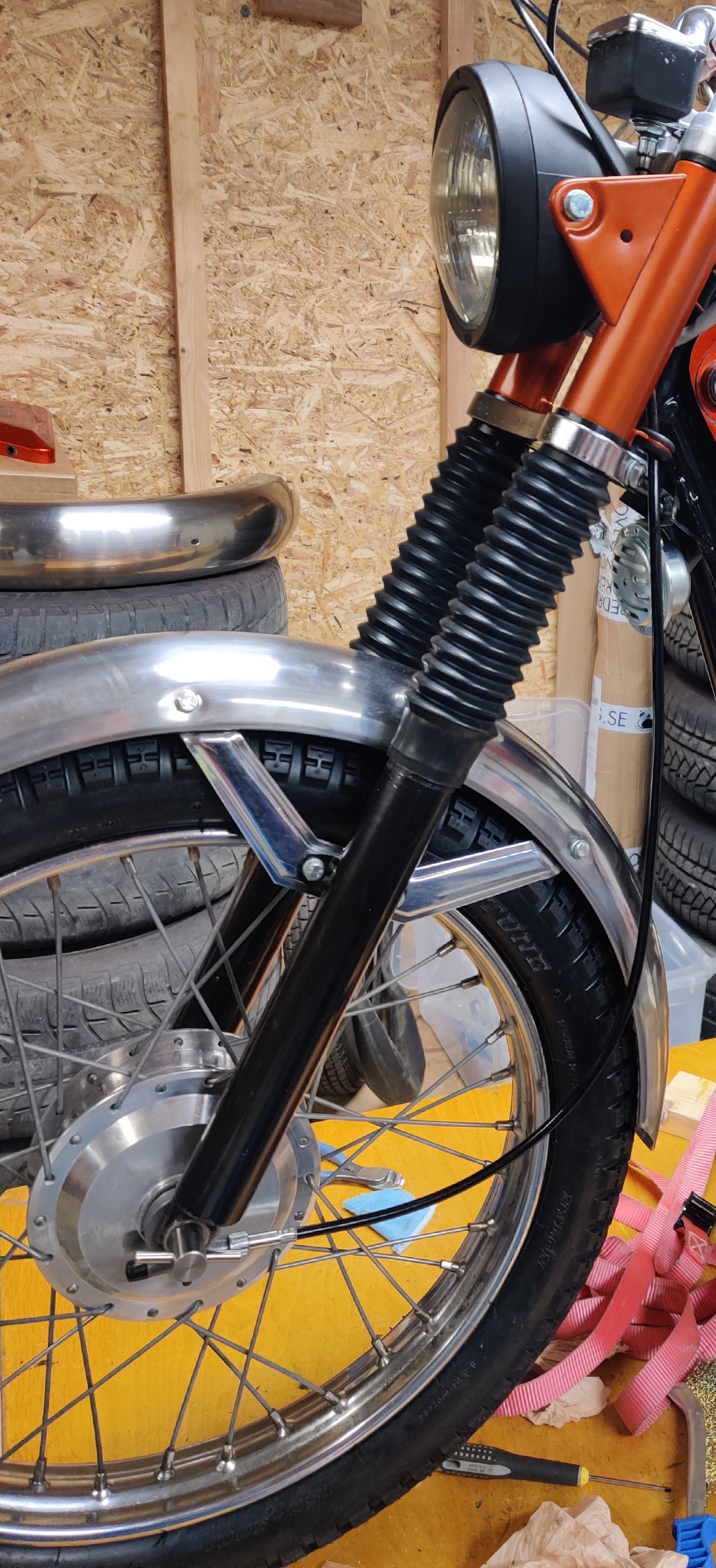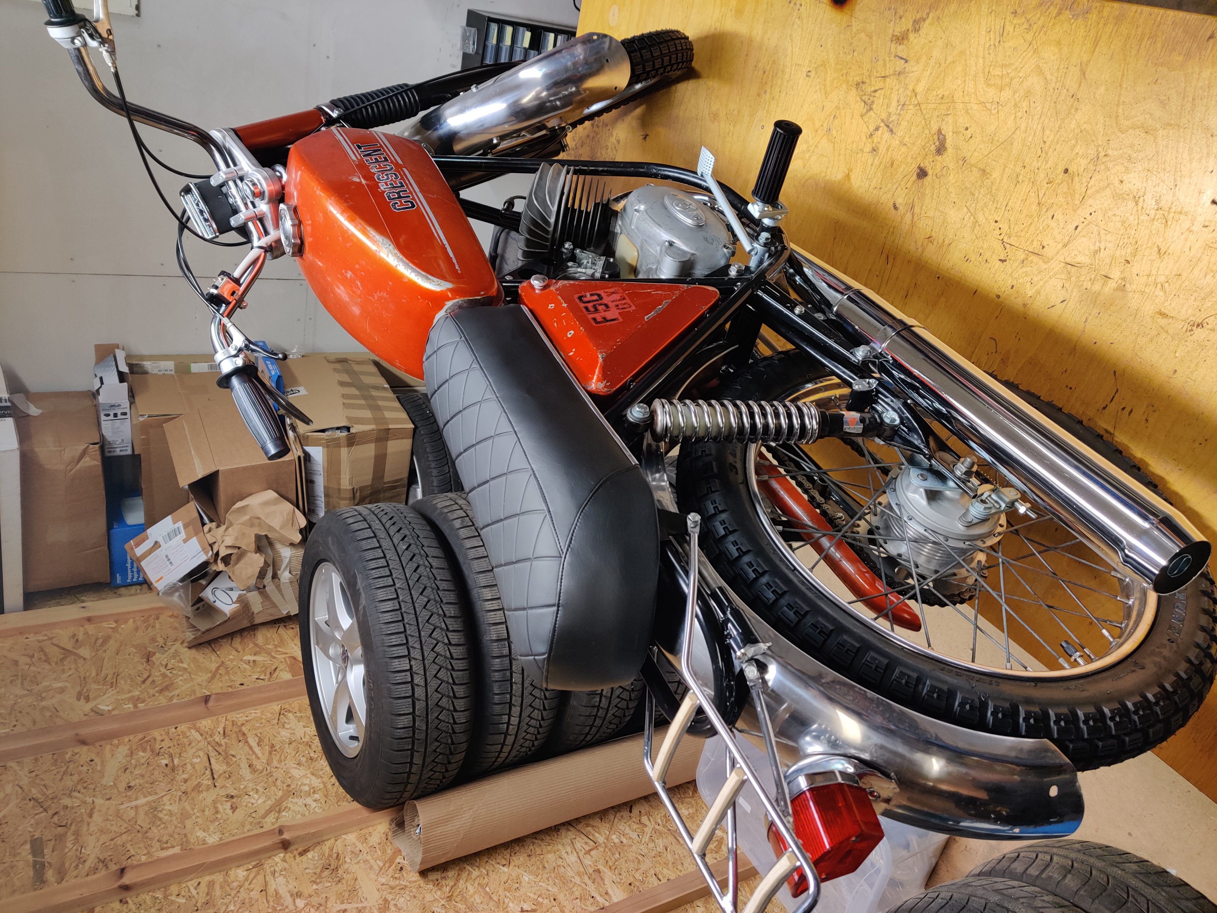 Saknar lite prylar för att färdigställa helt. Luftfilter, lite munstycken lär behövas, lyktglas och reflektor till gummilampan, matchande handtag till nya gasrullen.. och säkert trettioelva småpryttlar till som dyker upp.