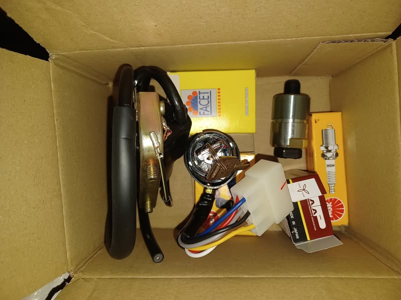Återstår beställt nytt tändstift tändspole kondensator brytare tändhatt o rätt modell avdragare samt ett tändningslås...