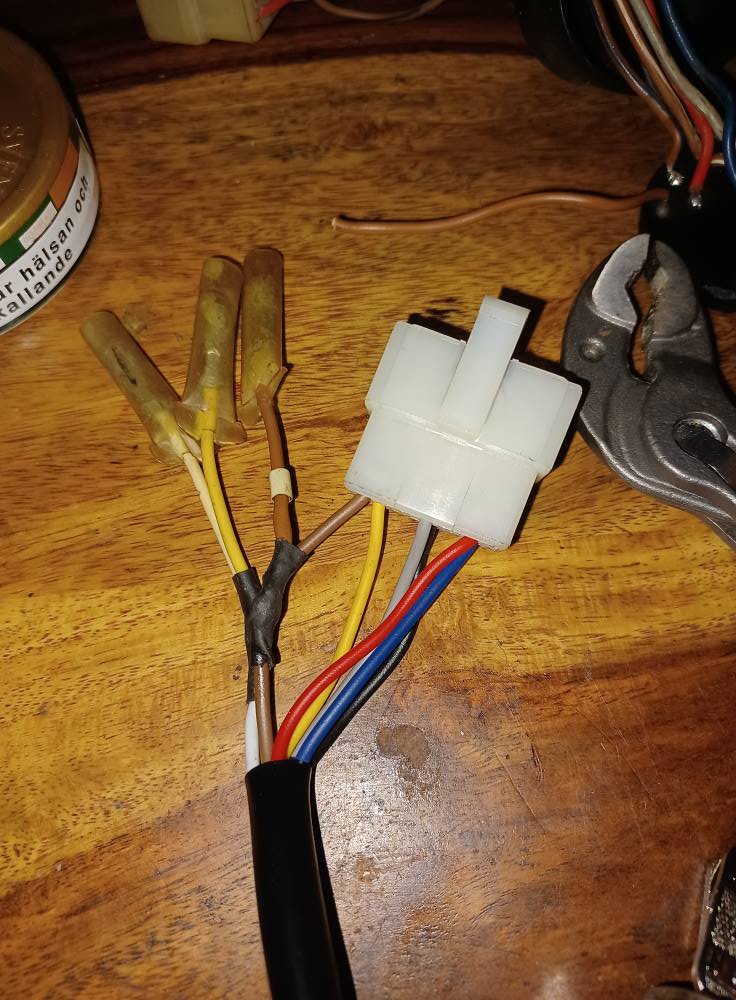 i kabelsticket så lödde på en extra tarm där. Men innan den kopplas in försöka forska fram korrekt elschema. Monterade på ny tändspole visserligen till en Honda C50 men skit samma behövdes bara ett nytt borrhål.