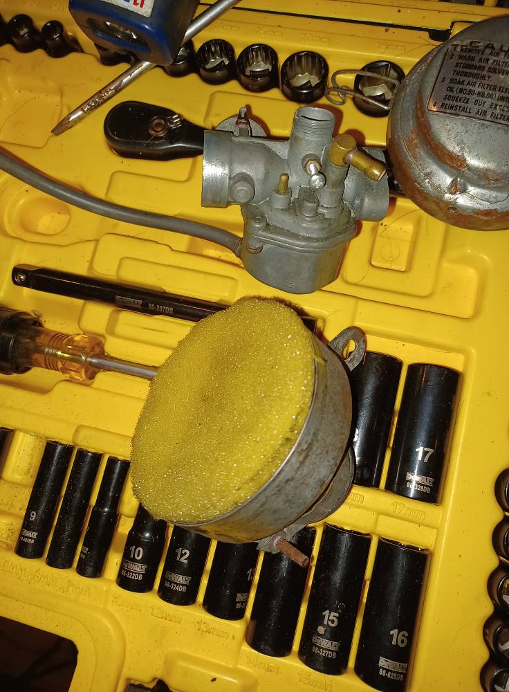 Sen saknades ett luftfilter så en brödkniv o en tvättsvamp som skivades en centimeter-tjock