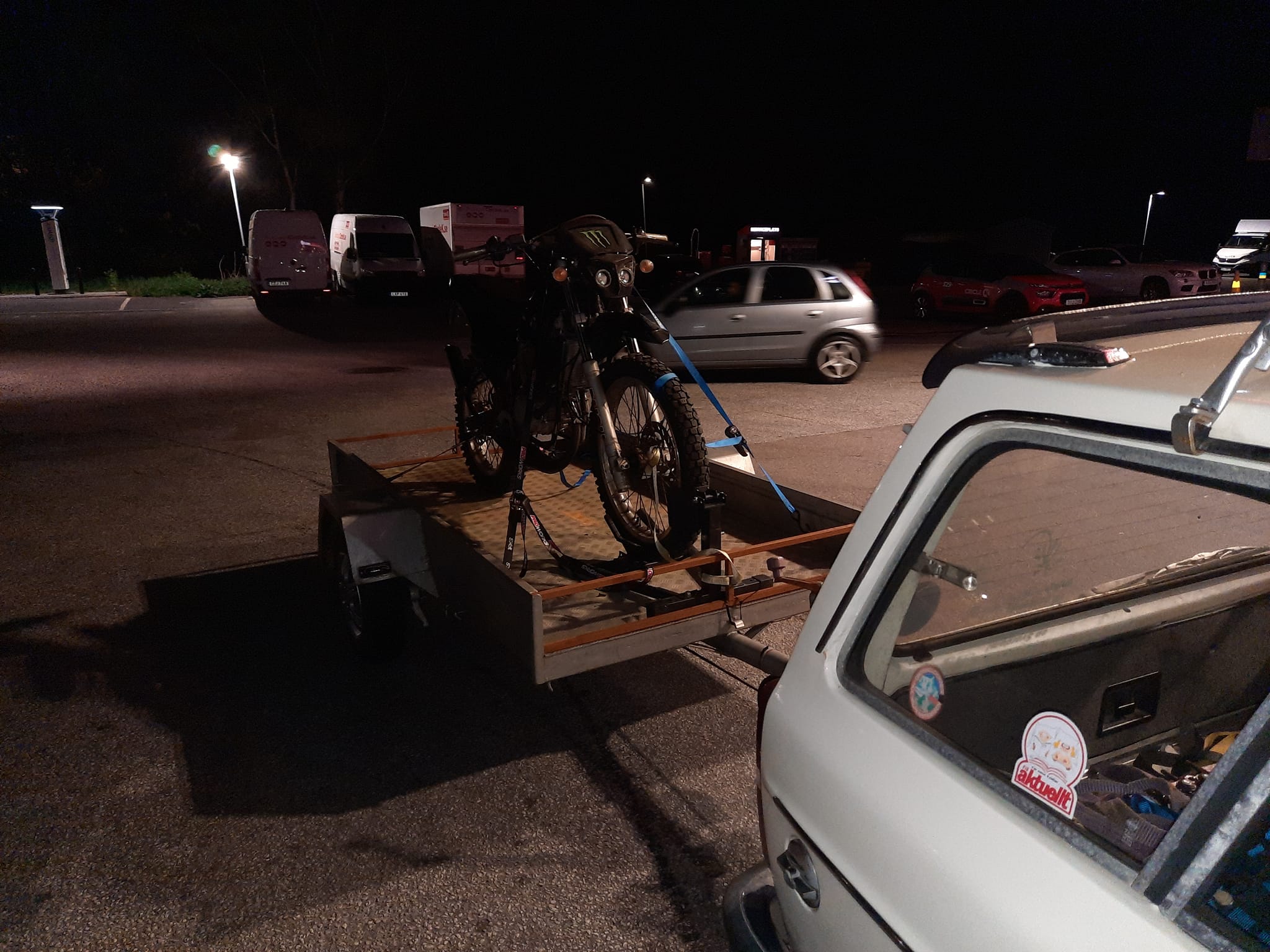 Kärran jag själv drog med. Köptes för dra mopeder i nov 2020 en gammal kärra från 1976 köptes billigt utan några lemmar..