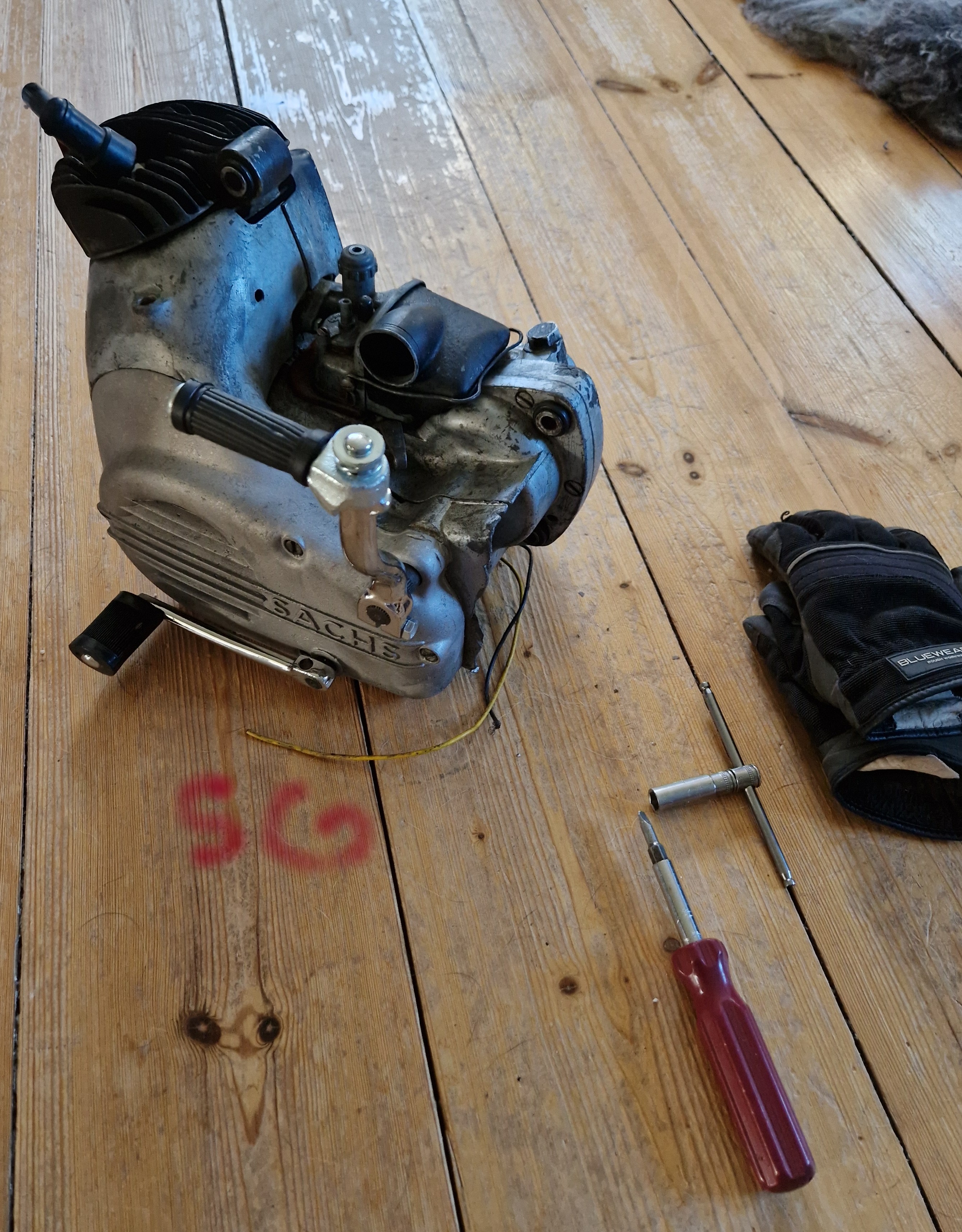När väl de var på, hade stora besvär att hitta neutral , men kunde ej hålla mig som i med startgas, och brum, lukta gott man flina. Får fan köpa motor bultar sen får barn bära ut i ladan och i ram, bulta kan man nog göra. Sen spola ur tank, ny bensinslang och filter sen kan man förhoppningsvis gång.