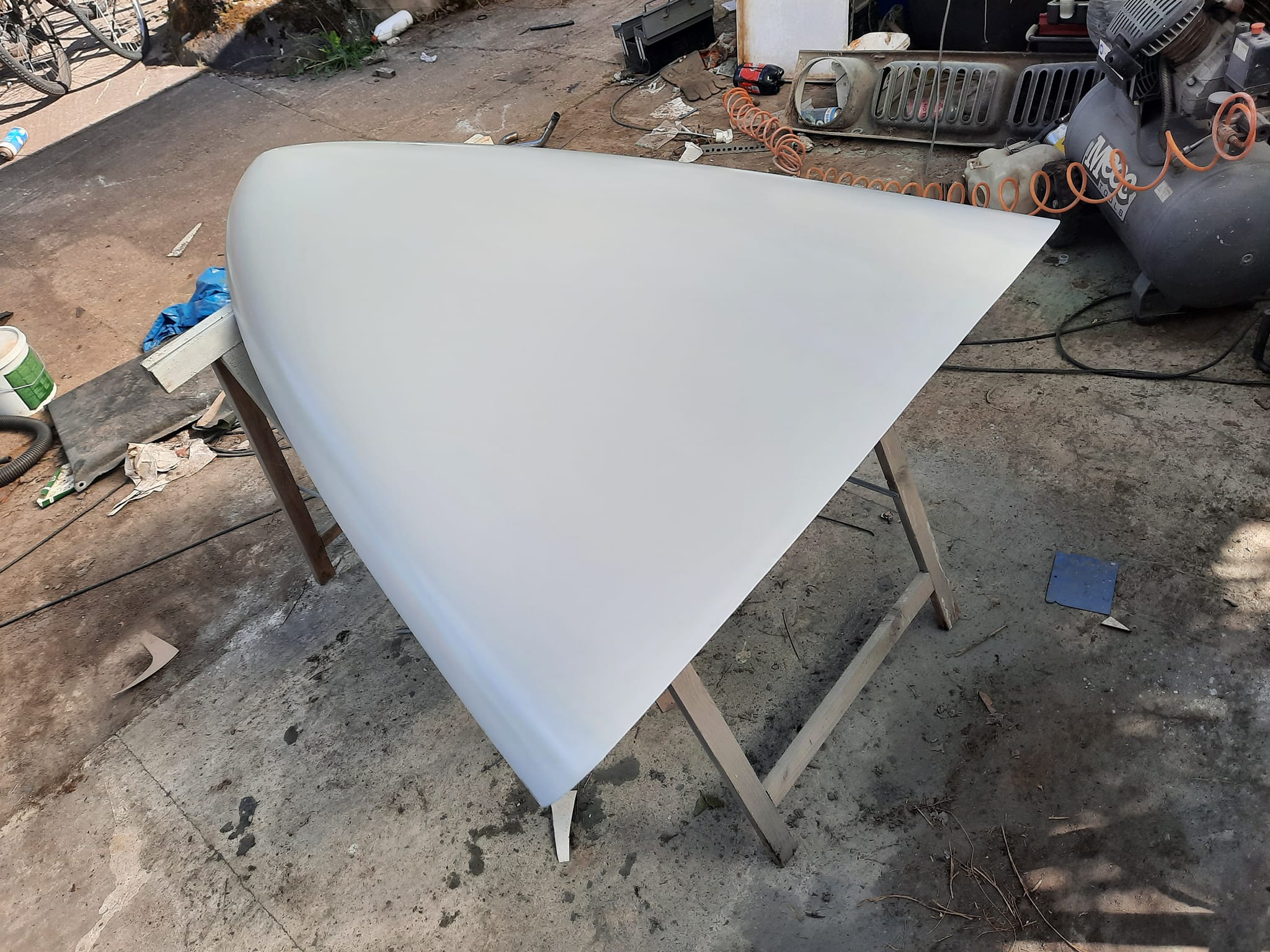 samt påbörjat slip och spackel av tak och bakände... Klurigaste blir få ut rutan då den är limmad på plats.