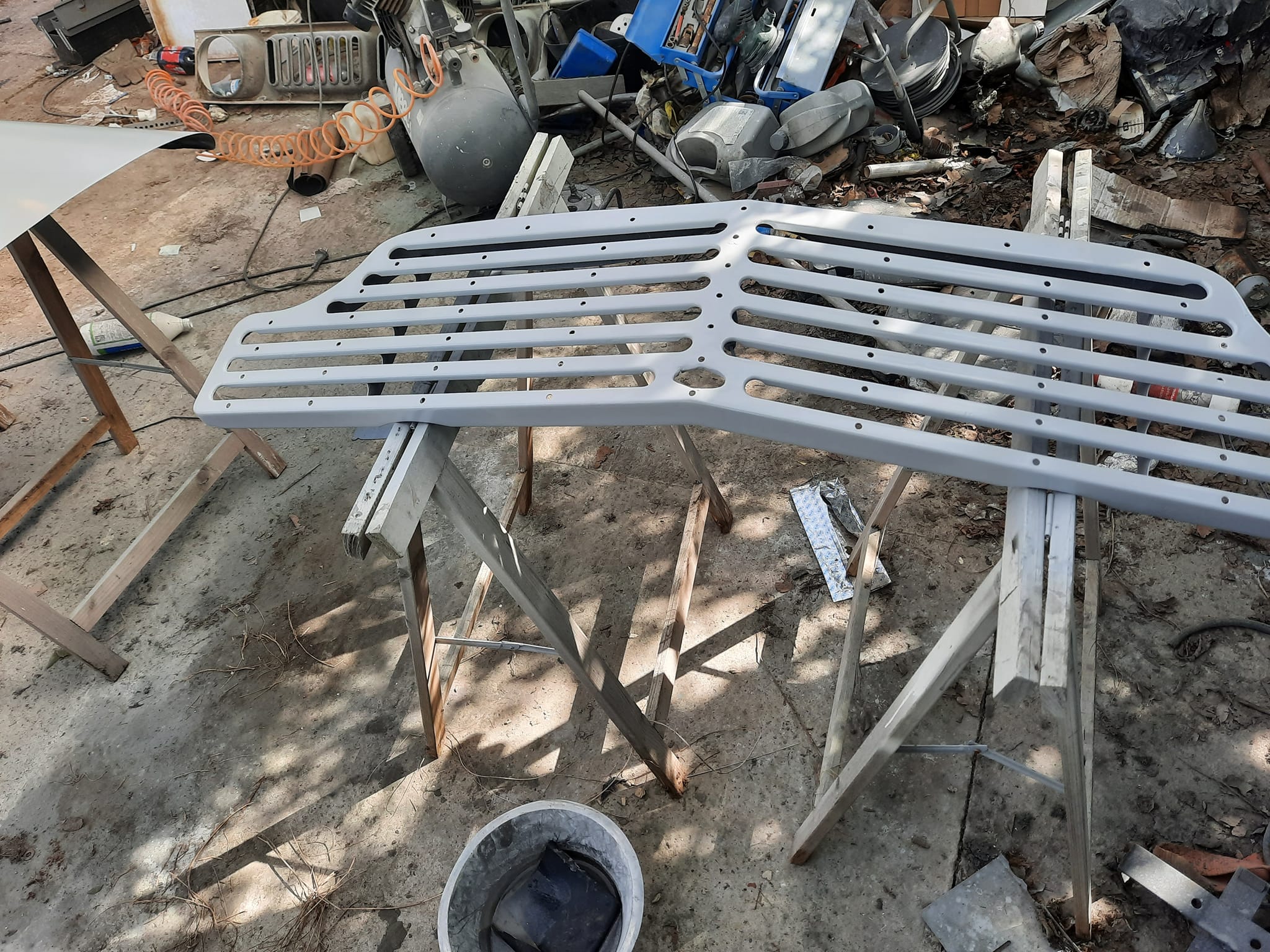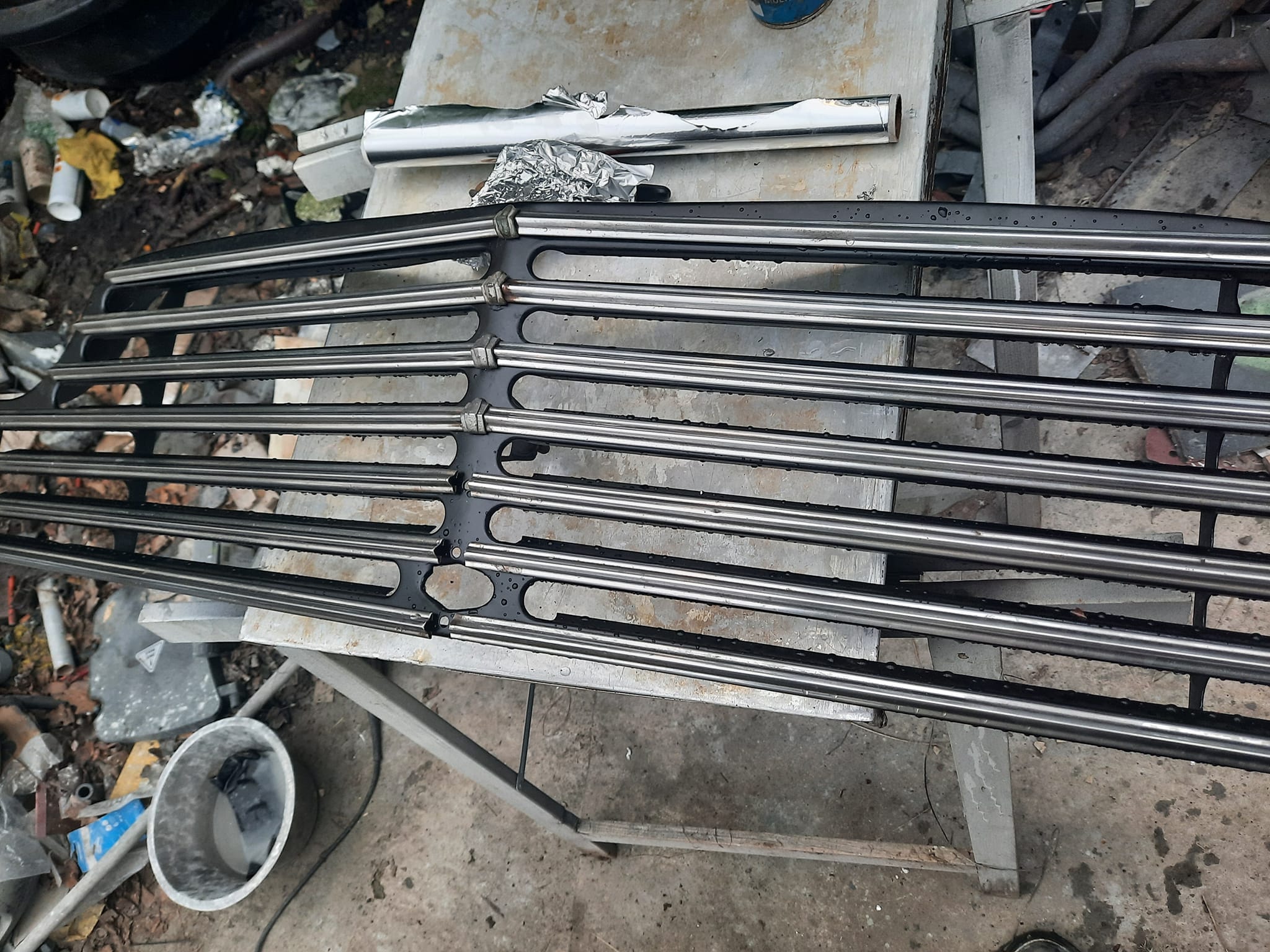 Men tänkte ge mig på få på främre kofångaren samt tillverka 3 mittlistbitar till grillens nedre ribbor återmontera grillen.