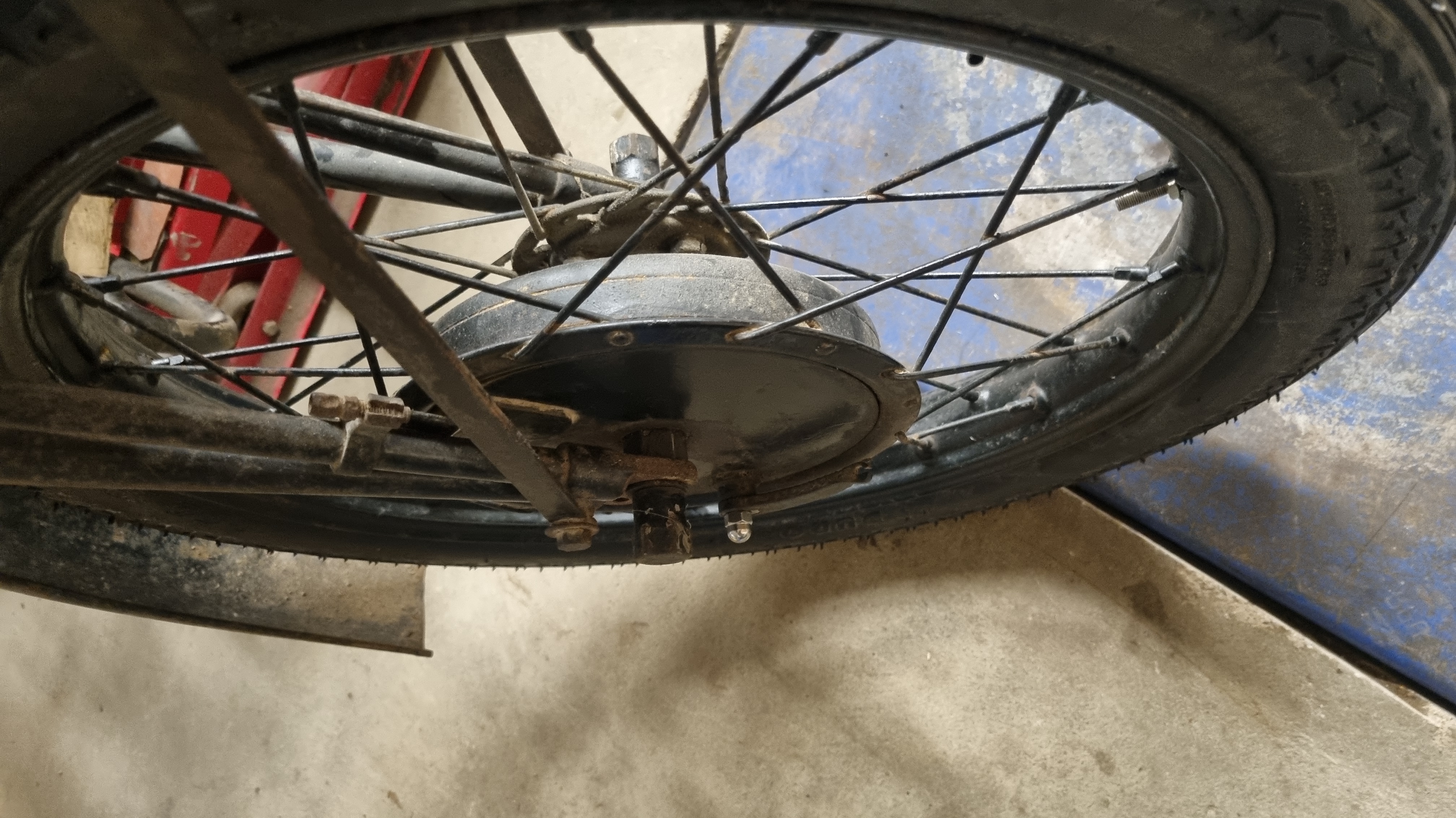 Så nu är bromsstrumman utanför ekrarna, detta påverkar egentligen inte ofsttet då den är som innan men sidostabiliteten borde bli sämre då ena ekersidan inte har samma lutning.