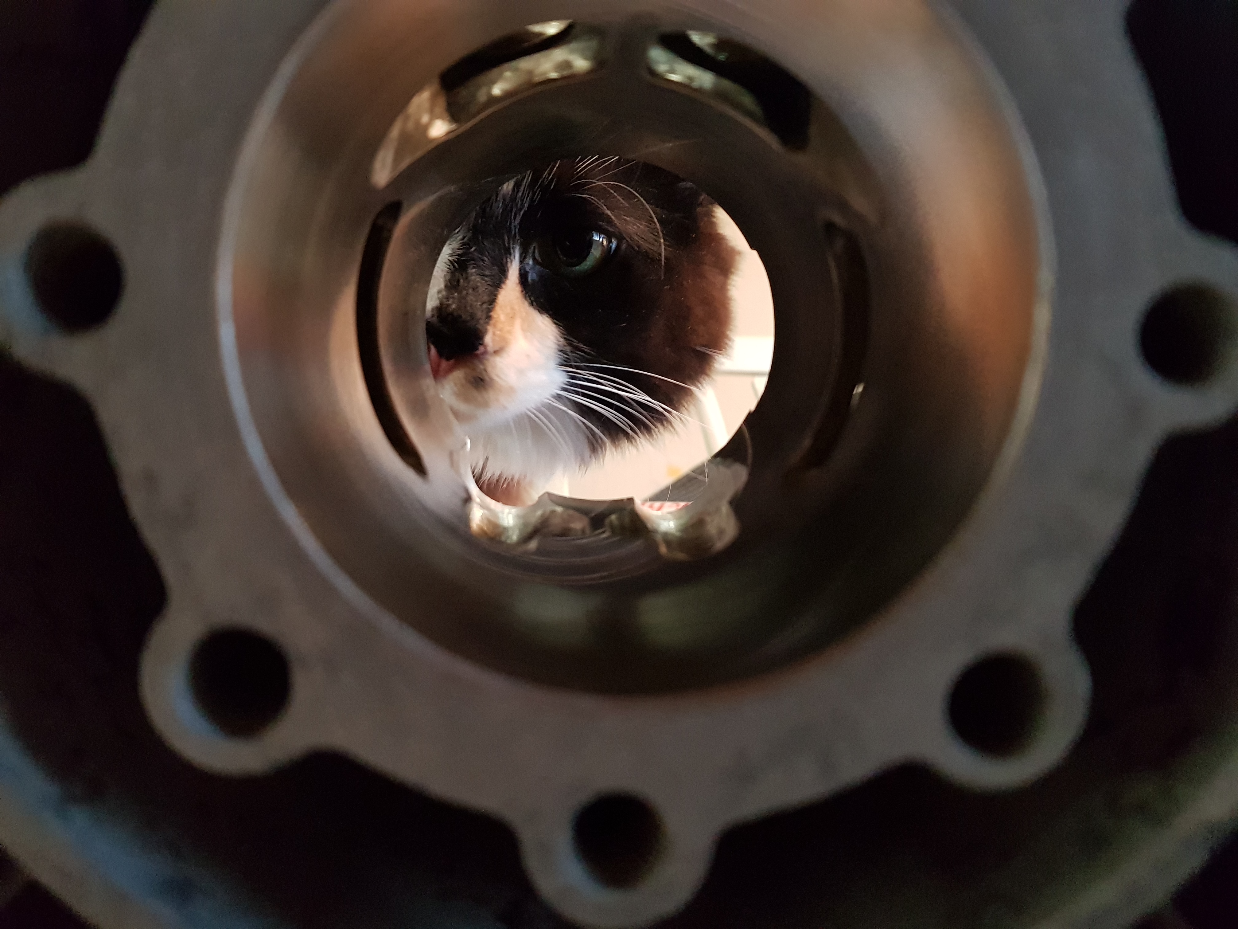 Svea inspekterar en cylinder som är portad.