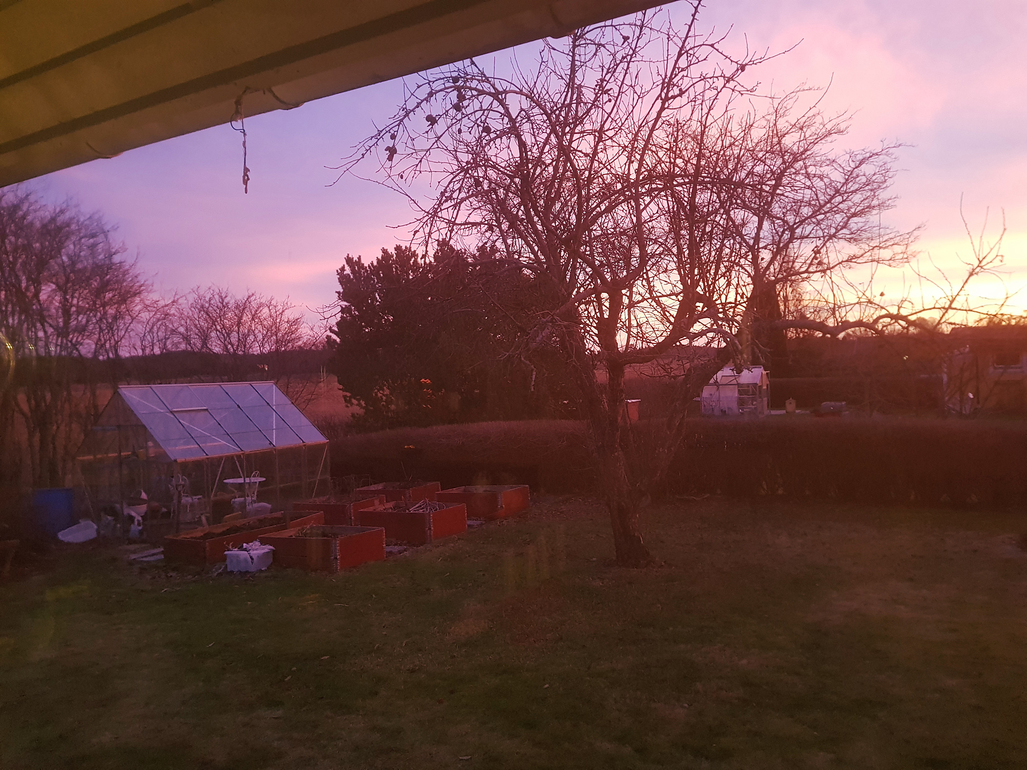 Nu på eftermiddagen ser det ut som norrsken när solen är på väg ner.