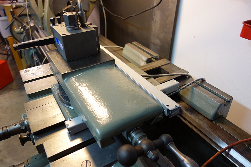 Här får Bachon vila en dag till så att den första påstrykningen får torka ordentligt. Så i dag har jag monterat digitaler på Munktellarn. Toppsliden och tvärmatningen är klara- I morgon monterar jag linjalen baktill för längdmatning.