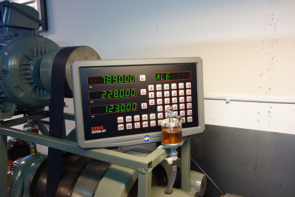 I går fick jag nytta av det lilla smidiga antika maskinistvattenpasset som jag har. Jag har ett riktigt också som är större och noggrannare men det här lilla var perfekt när jag vägde in linjalerna till DROn. Maskinpasset är tillverkat i England och i fint skick. När jag väger in den 120 cm långa linjalen senare i dag, hoppas jag, som som ska sitta på baksidan för att mäta längdmatning, kommer jag dock att göra det med en indikatorklocka. Om det slår fel någon tiondels grad på en kort linjal gör inget men på en lång linjal skulle ett smärre vinkelfel göra att löparen kan nypa och ta med sig innanmätet som är ett glasrör.