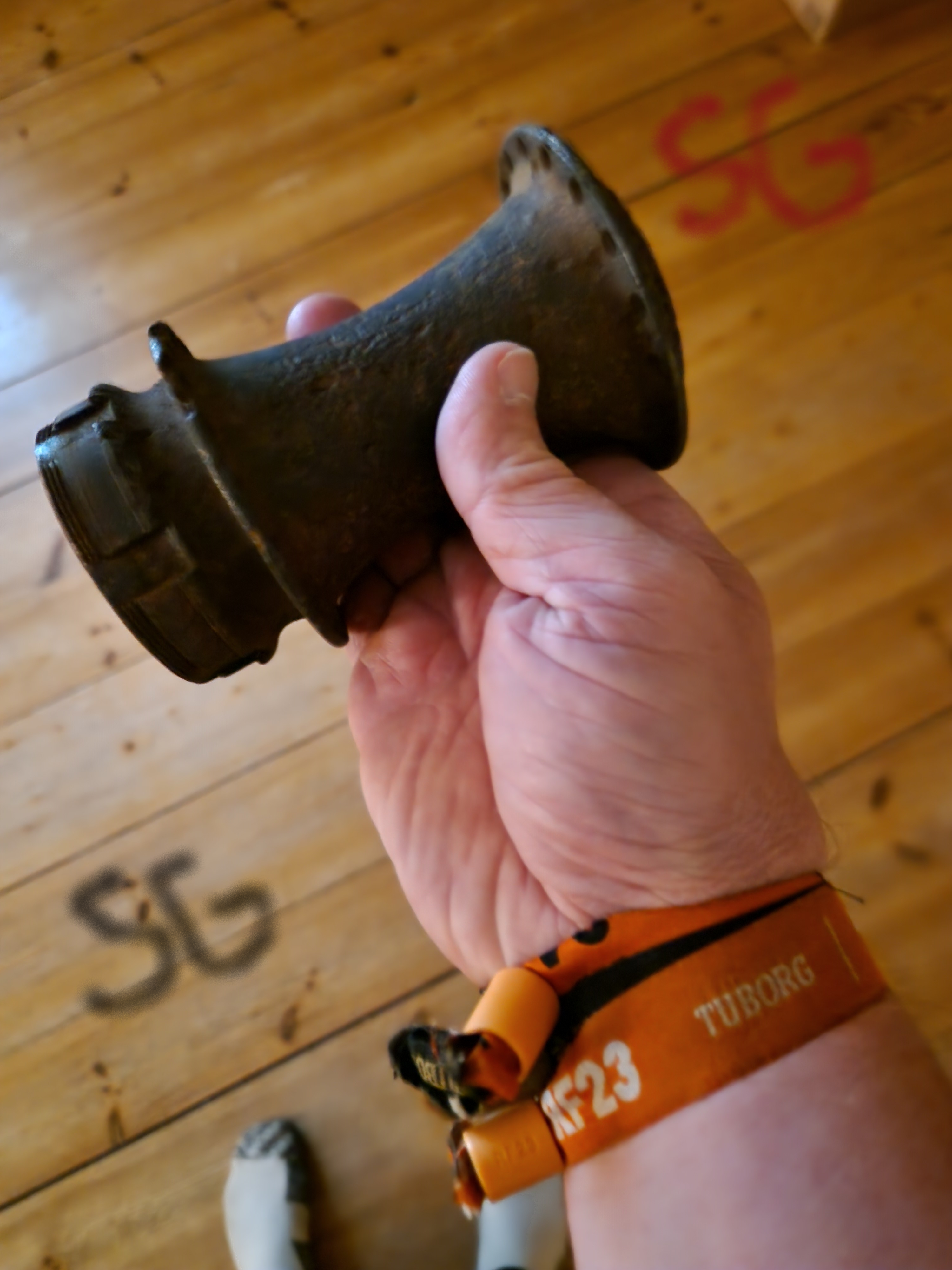 Ena sidan är där man sätter ekrar är 5st av hålen inte hela högst upp tyvärr, få ihop det med nytt kommer vara en utmaning.