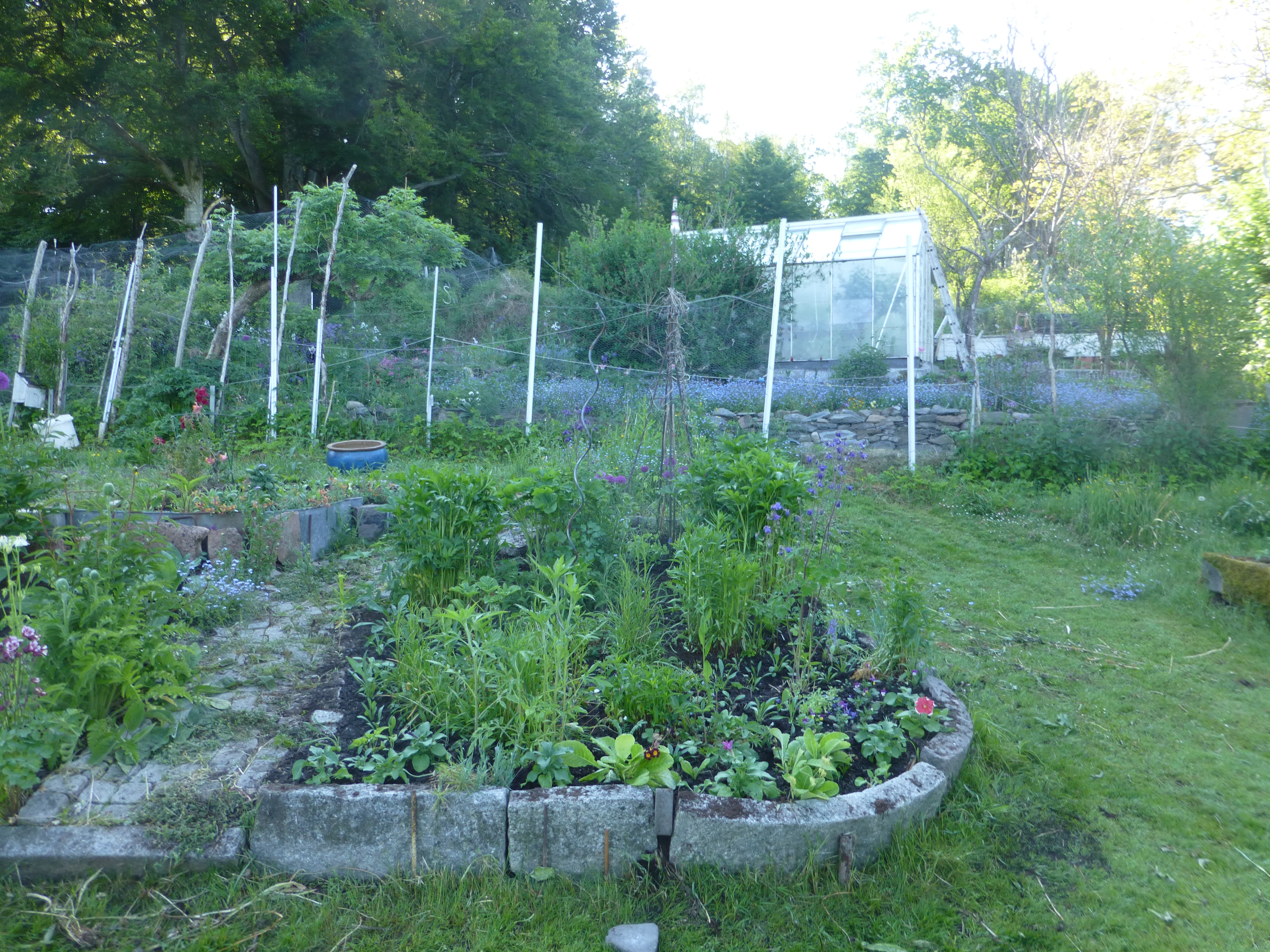 Vy nedåt, bara bitar av trädgården på bilden, finns mycket mer.