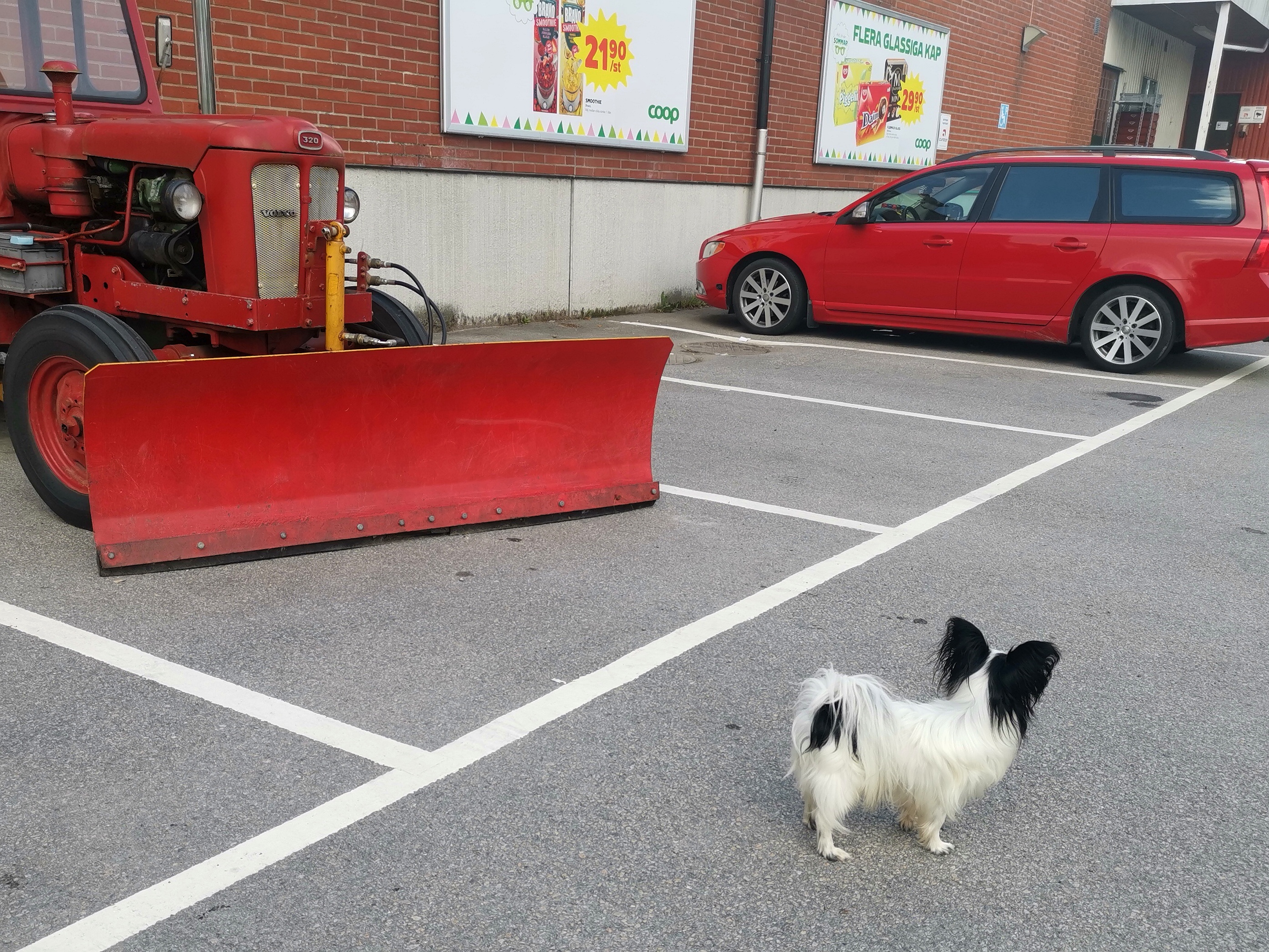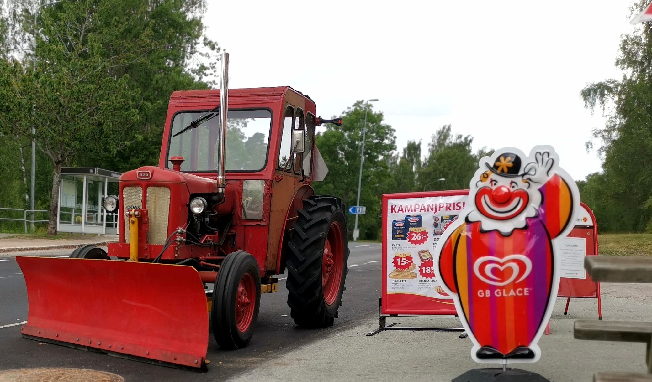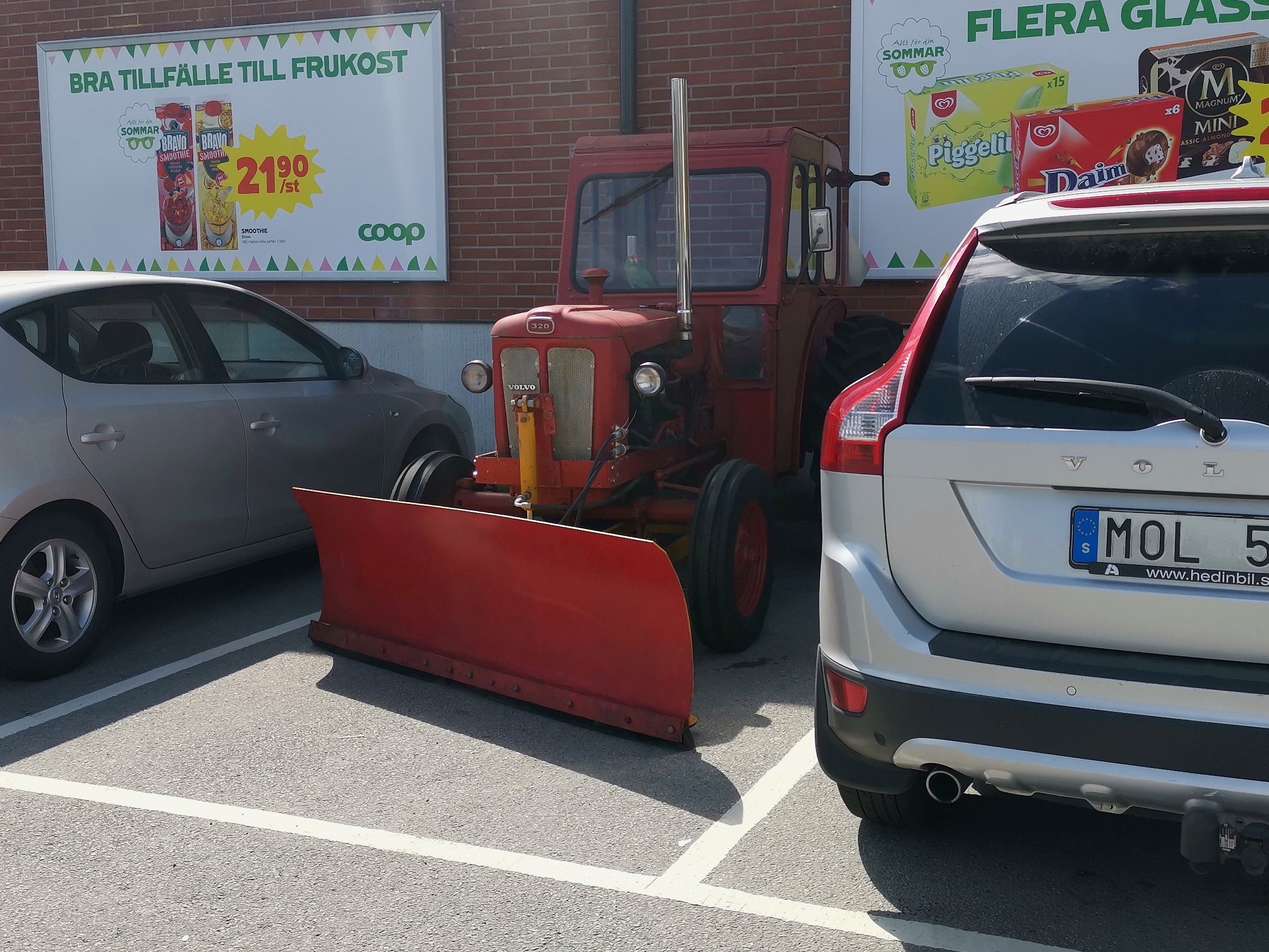 Ja det är inte ofta man ser traktorer på parkeringen utan för affären numera.