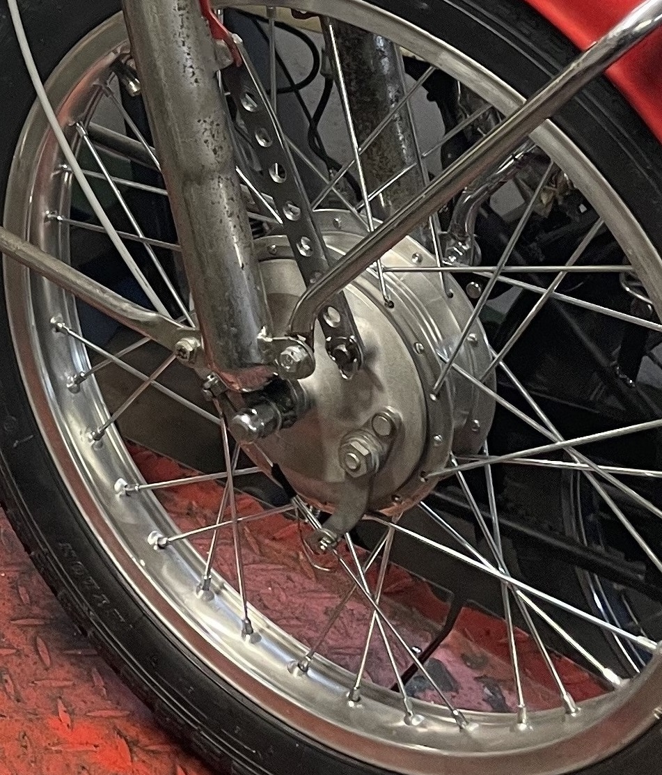 Men du vet att du kan använda ett hjul eller nav från Puch Montana etc va? Det breddar kanske utbudet, för det är samma nav fast bromsskölden sitter fast med ett stag istället för grejen som skall in i slitsen. Här är ett sånt som jag satte på min SIS.