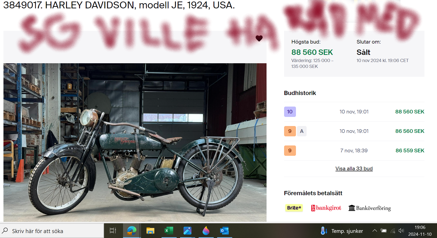 Har du 100-150000kr får du högaktade 1920 Harleys, bygga vilket jag gör tar tid och mycket pengar, bättre köpa går ej eller komplett objekt än det.