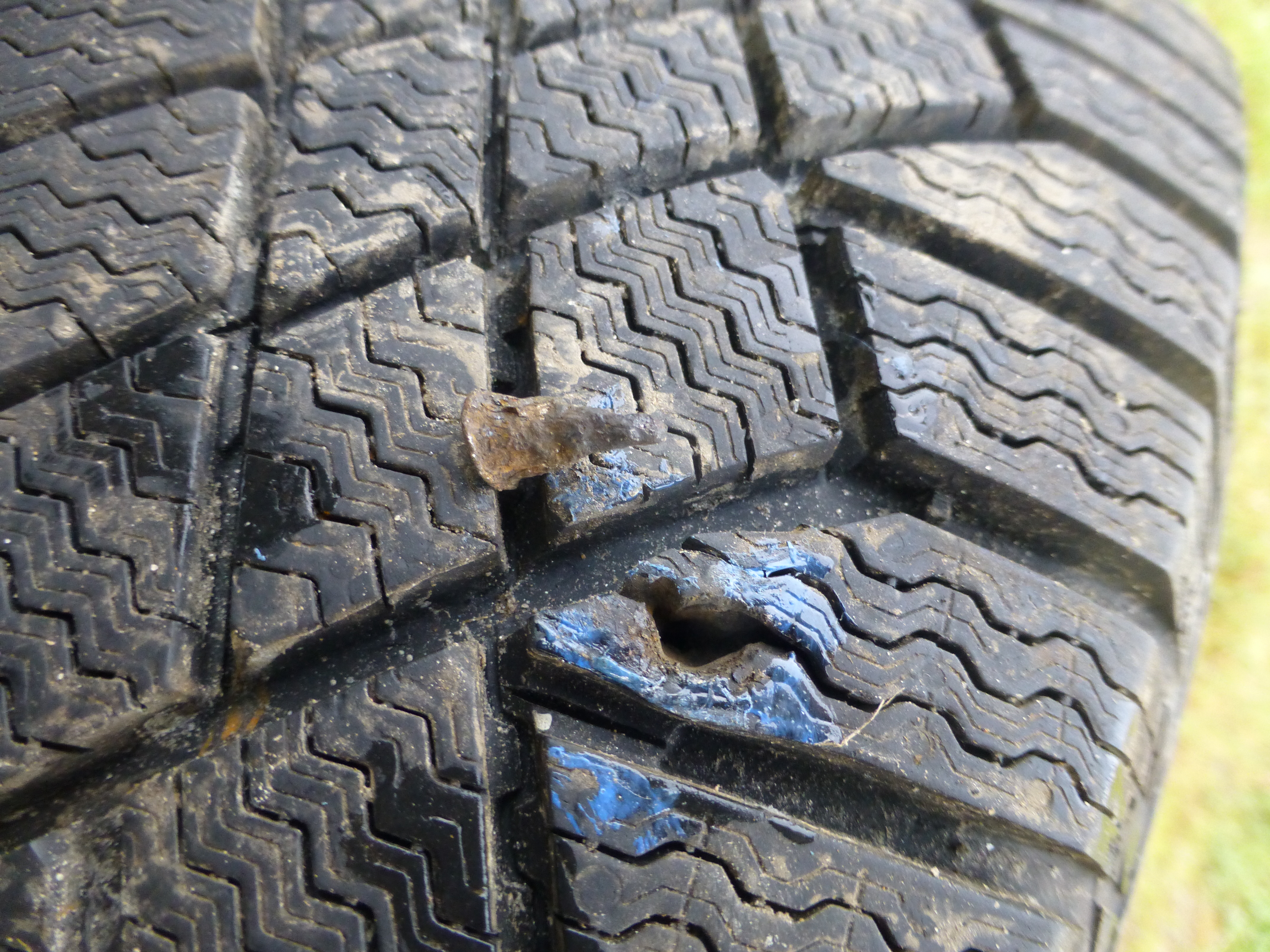 Skulle flytta vinterdäcken i garaget och upptäckte att ett var tomt :shock: Orsaken stod snabbt klart.