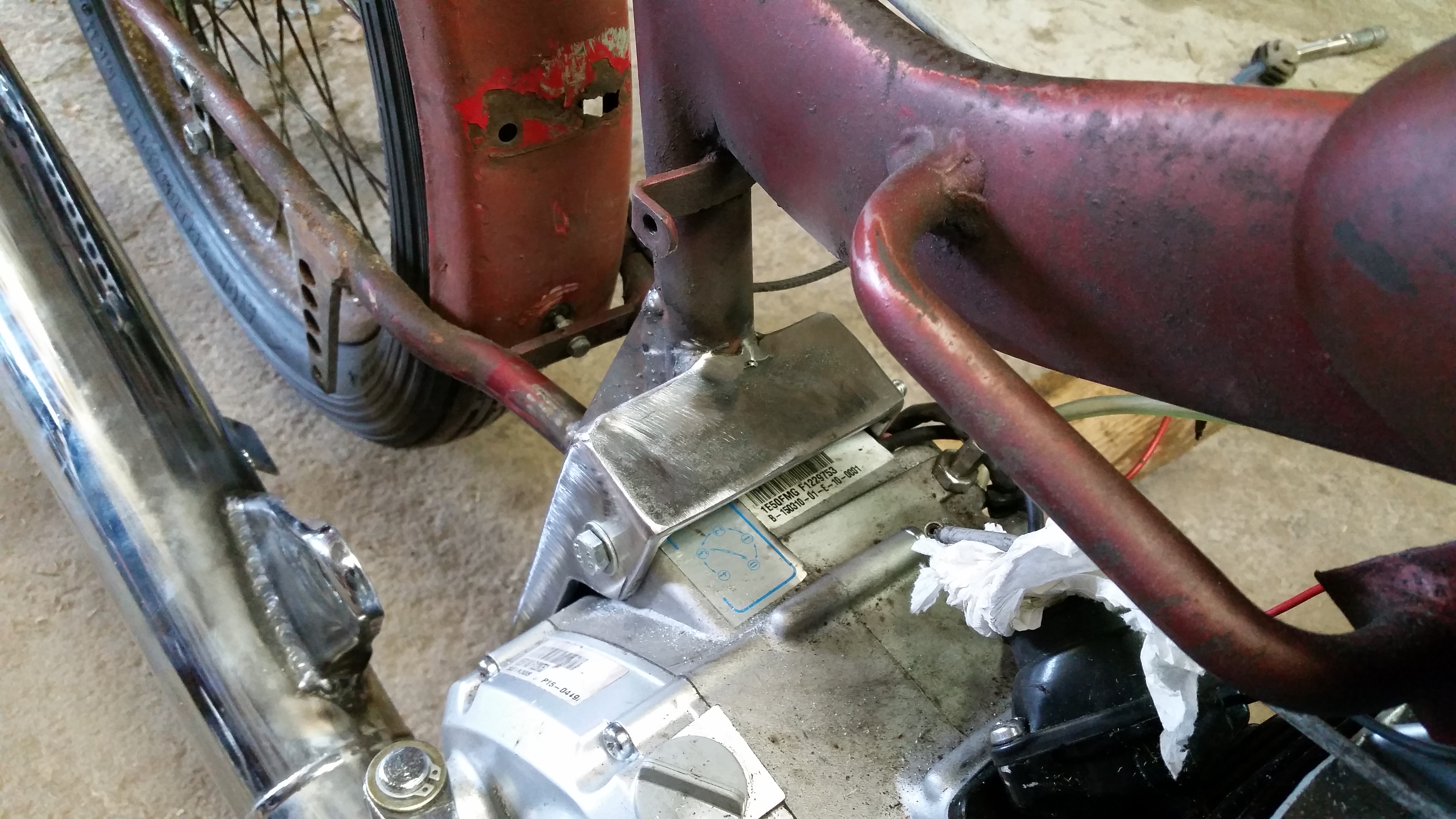 Motorn passade inte riktigt i originalfästet så jag fick modifiera lite. Motorfästet ska bli uppstagat ytterligare mot bakre delen på ramen både uppåt och åt sidorna. Det är endel vrid som ska tas upp..