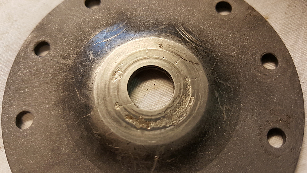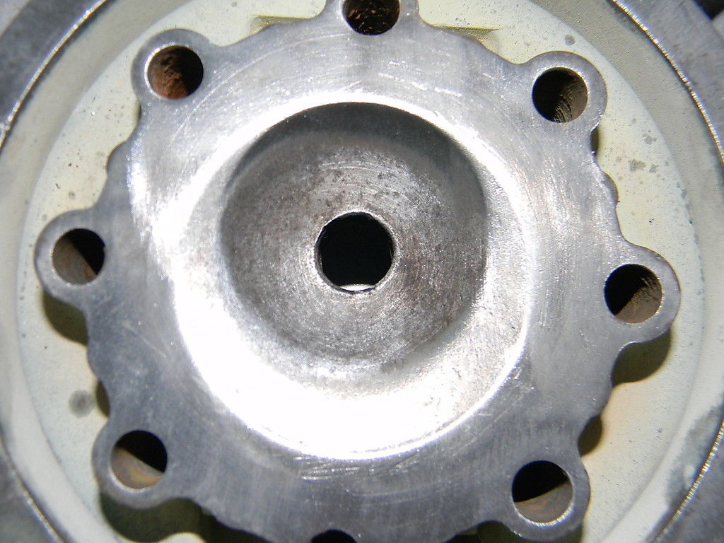 Det fanns ingen inre bricka på den 5vx KS50 motorn heller som jag gjorde iordning precis innan jag började med den här motorn och den hade också ett axialrullager. Ytan på KS50 motorns tryckskiva var dock helt okey.