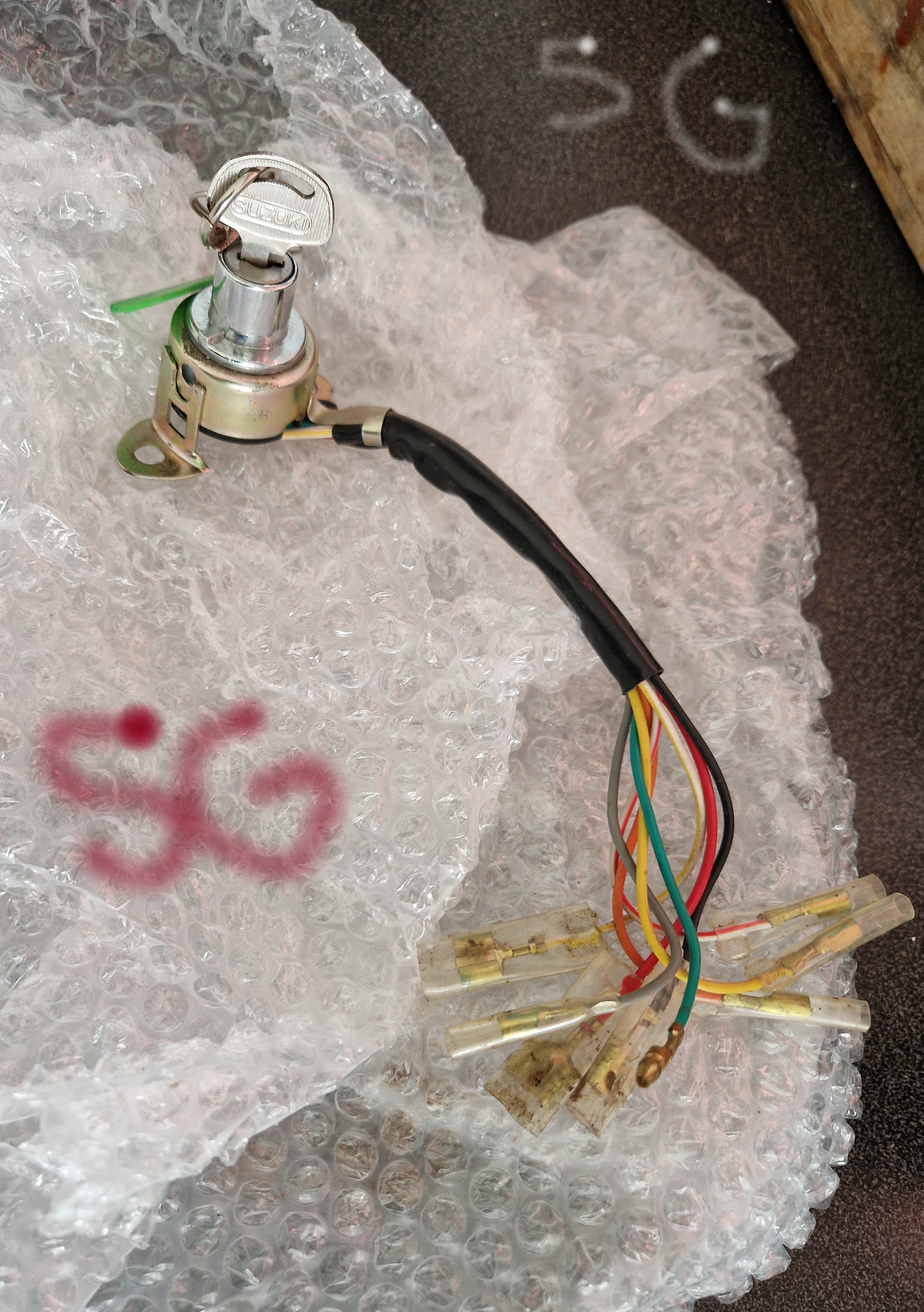 Ska ej börja med spy över Postnord. Efter lång väntan kom det ett litet paket i brevlådan, hämta hem. Slet upp den vältejpade lådan(blev ej mycket kvar av den) men där var min Suzuki K50 Tändningslås som var väl lindat i bubbel plast. Visst 250kr i men har inget tändningslås med nyckel utan bara på men ingen nyckel på min 1979 Suzuki för sen som hade min hade slarvat bort nycklarna men den var ju på tändning så jag brydde ej med den. Sen vill man ju ha original made in Japan med.