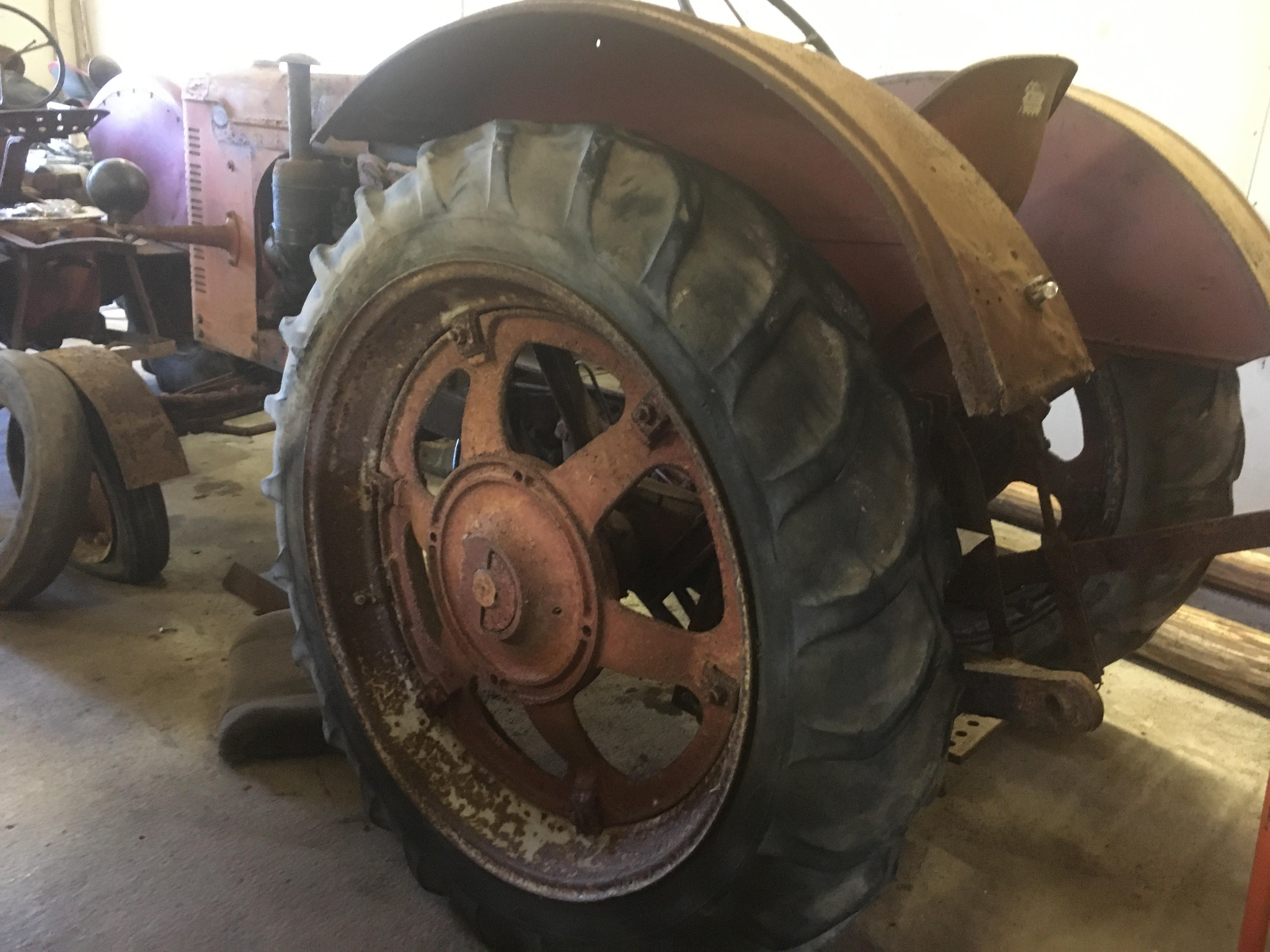 Nästa är en Massey Harris 102 Junior från 1945/1946. En lite ovanlig modell som det nog inte finns så jätte många av. Den köpte jag som ett ej fungerande objekt av en trevlig herre för lite för mycket pengar egentligen, men motorn kom igång hyfsat lätt efter lite översyn ändå! Och visst det har varit en del strul med andra grejjer på den, men den går ganska bra och är trevlig att köra med. Riktig prärietraktor känns det som när man sitter på den (man sitter högt upp på en platform).