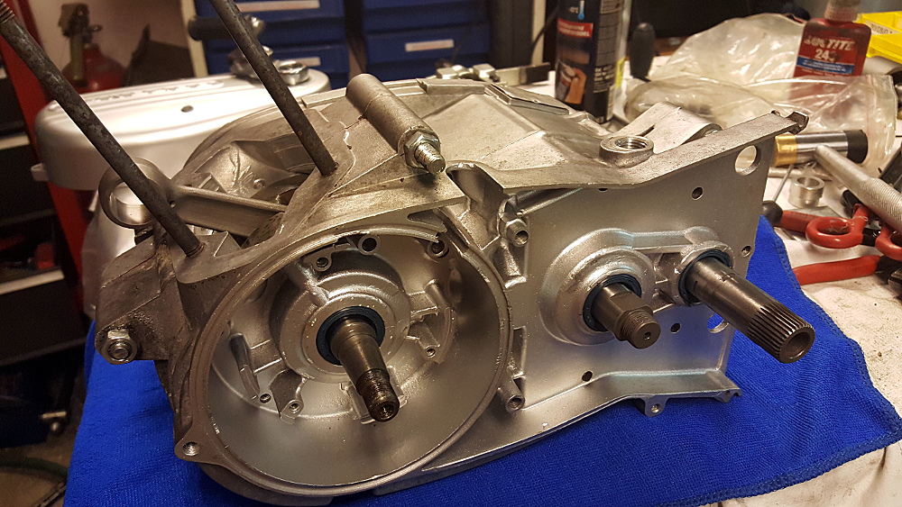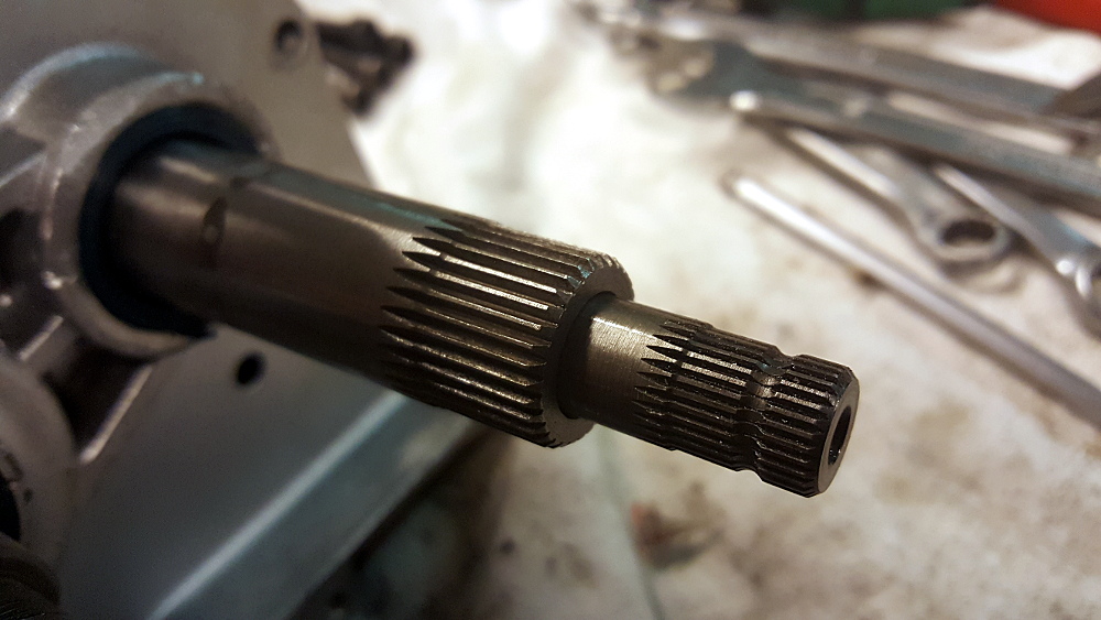 Normalt finns ett eller två shims under kopplingsnavet för att ställa in spelet på primäraxeln. I mitt fall, och det kan bero på att jag har en nytillverkad primäraxel, så blev spelet ganska exakt en tiondel som det ska vara utan att behöva använda shims där. Jag trodde t.o.m att navet bottnade men det fanns en tiondel kvar som behövs för att kopplingen inte ska låsa fast.