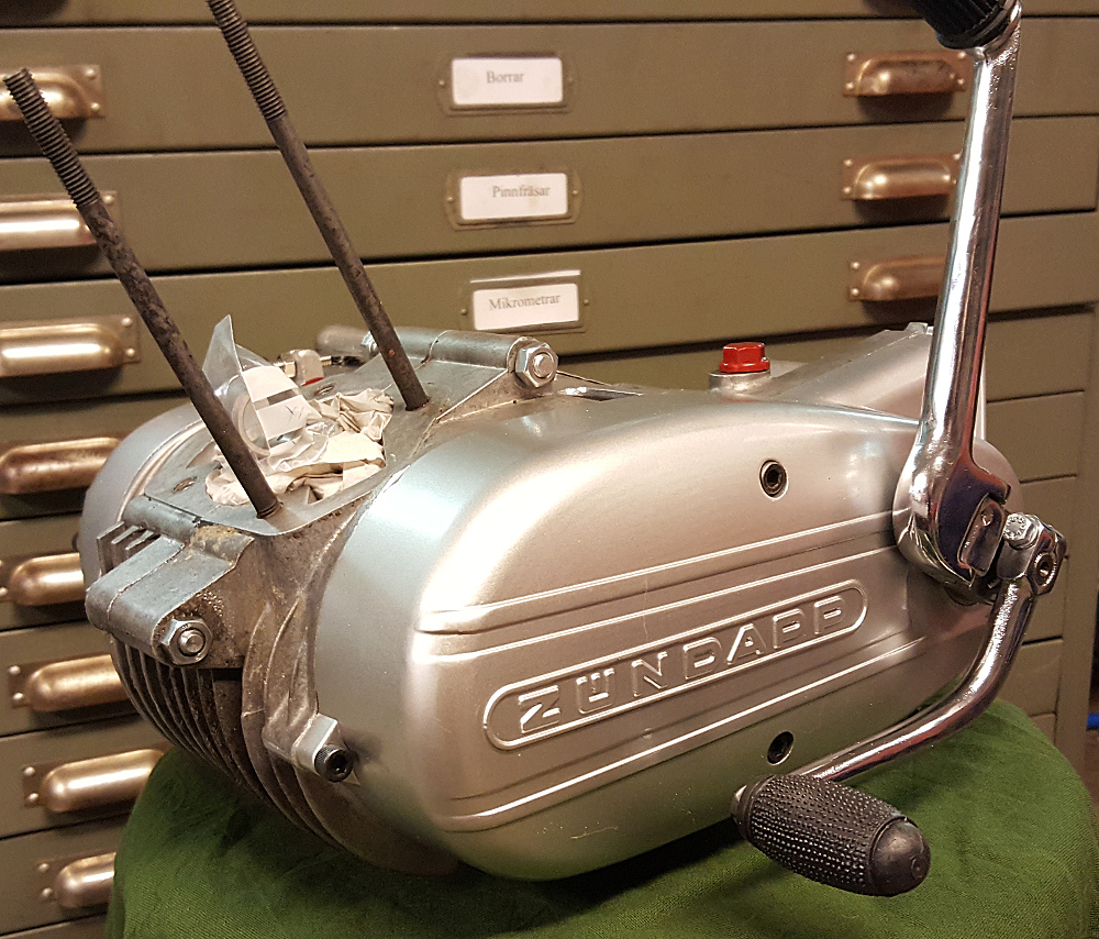 Här kan man se hur mycket det skiljer i storlek på mopedmotor resp MC motor