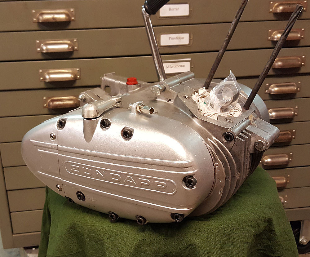 Som ny 8) Men det är bara vad man kan vänta sig från dig. Hoppas du lägger ut en kostnadssammanfattning när att är klart, det är alltid bra om det framgår hur mycket det kostar att göra i ordning en motor. Spelar viss roll när man skall köpa en motor, brukar löna sig att betala mer för ett bra objekt. Min har ju en del jobb kvar som installera tändsystemet, justera kopplingen och kolvringen skall på plats innan cylinder och topp skall på permanent. Jag bara oljade in kolven utan ring och satte på delarna för att skydda vevhuset så länge. Blev överraskad över hur trögt det var att trä på cylindern på kolven fast kolvringen saknades :shock: Blir bra komp när man ska kicka igång :lol: Förutom insugsgummit saknar jag också spårskruvarna till tändplattan. Blir intressant att höra din erfarenhet av ett modernt tändsystem.