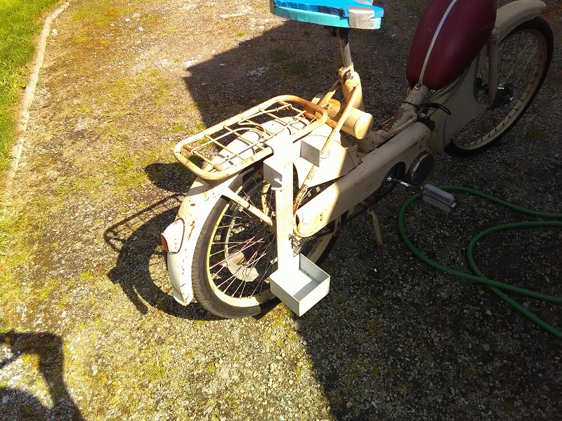 Sen byggde jag ett campingstols fäste att ha på mopeden till rättvik med :roll:
