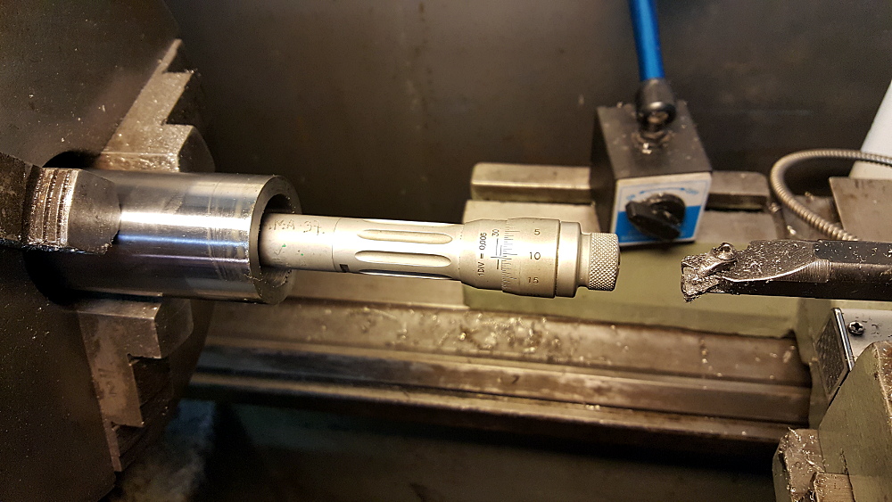 Djäklars vad hårt innerringarna satt. Men det gick utan problem med verktyget. Ringarna sitter med mycket hård presspassning 4 hundradelar. Det kanske inte låter mycket men det är väldigt hårt och innebär att delar av stål ska pressa ihop trots att det är nästan en halv tiondels mm för trångt