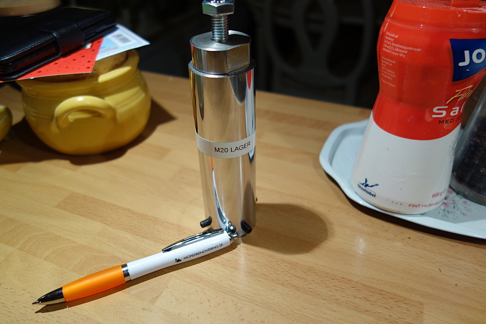 Mopedrenovering fick lite reklam på köpet genom att det är deras fina penna som används för att se storleken på verktyget.
